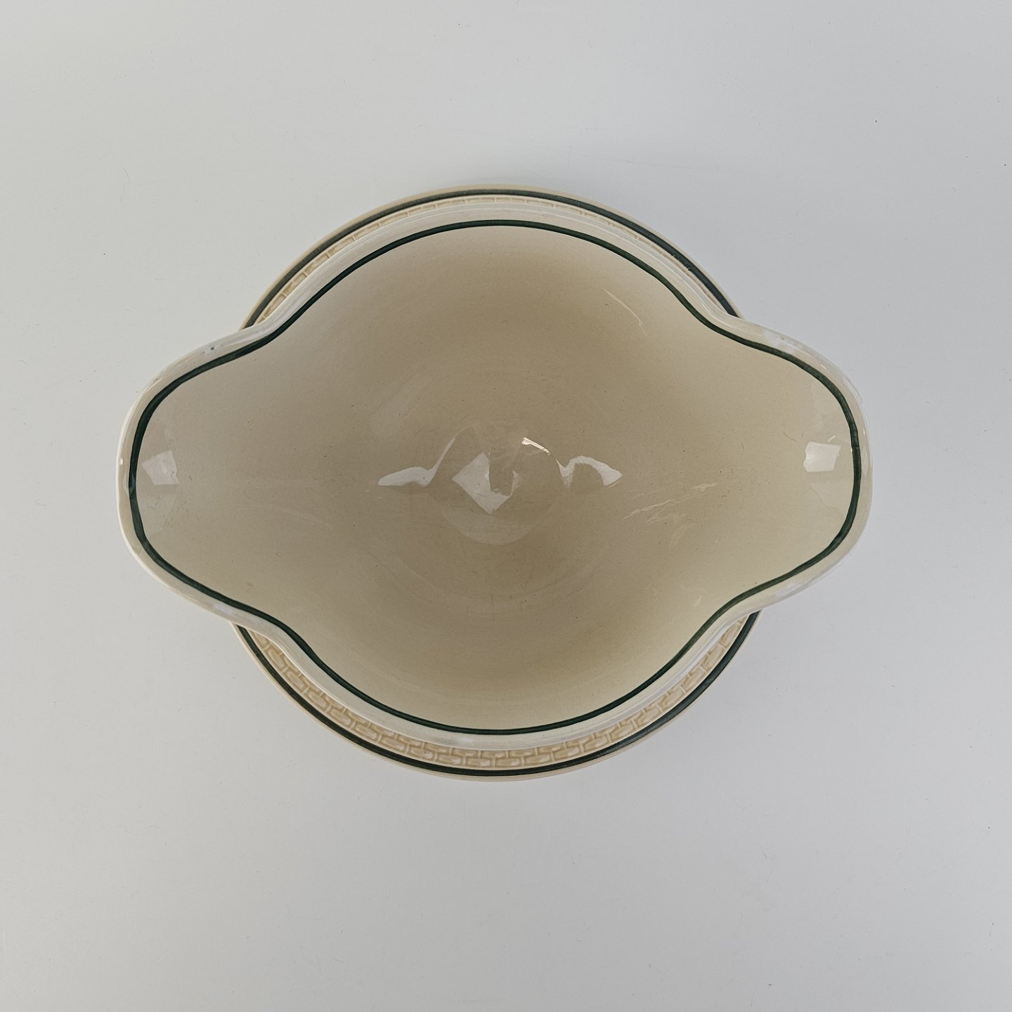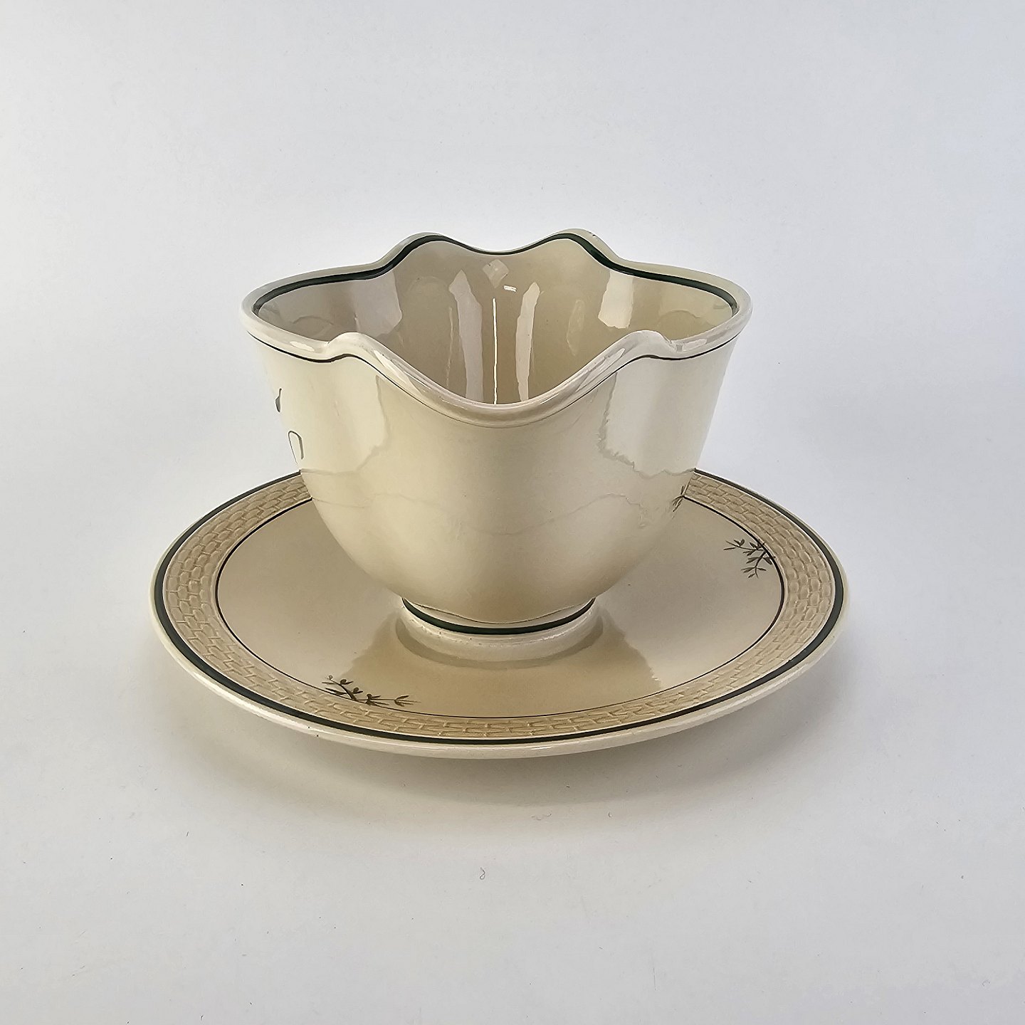Beskrivelse: Sovsekande i fajance fra stellet Vibeæg