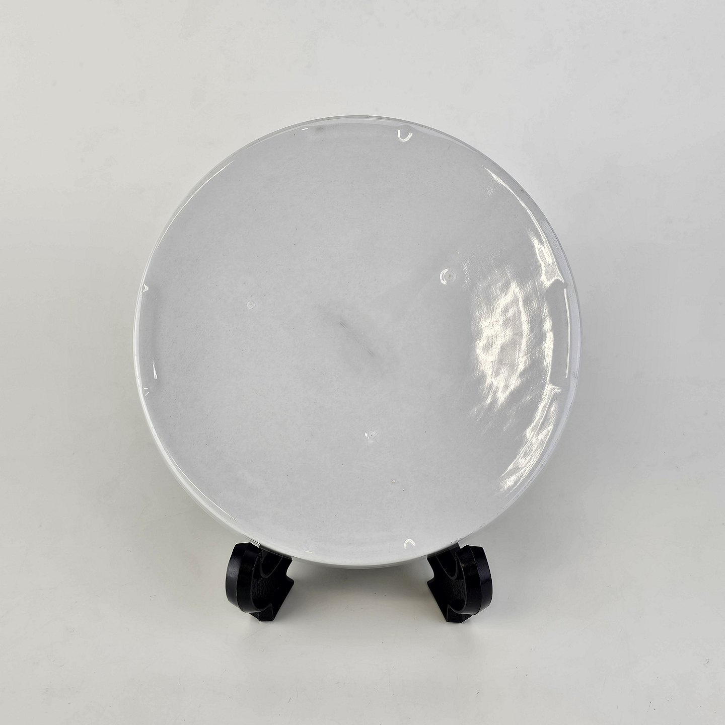 Blåkant er stel i hvid fajance med dekoration af en blå streg på kanten