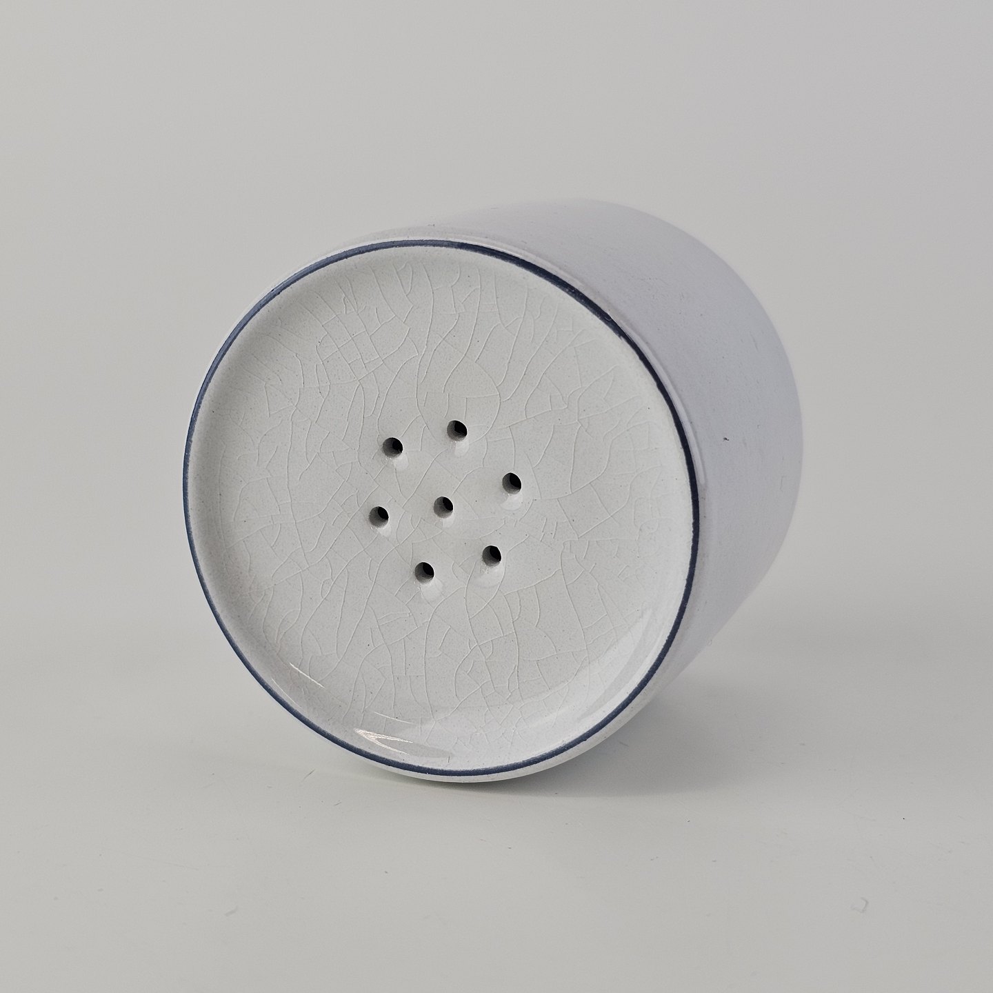 Beskrivelse: Saltbøsse i fajance fra stellet Blåkant