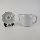Blåkant er stel i hvid fajance med dekoration af en blå streg på kanten