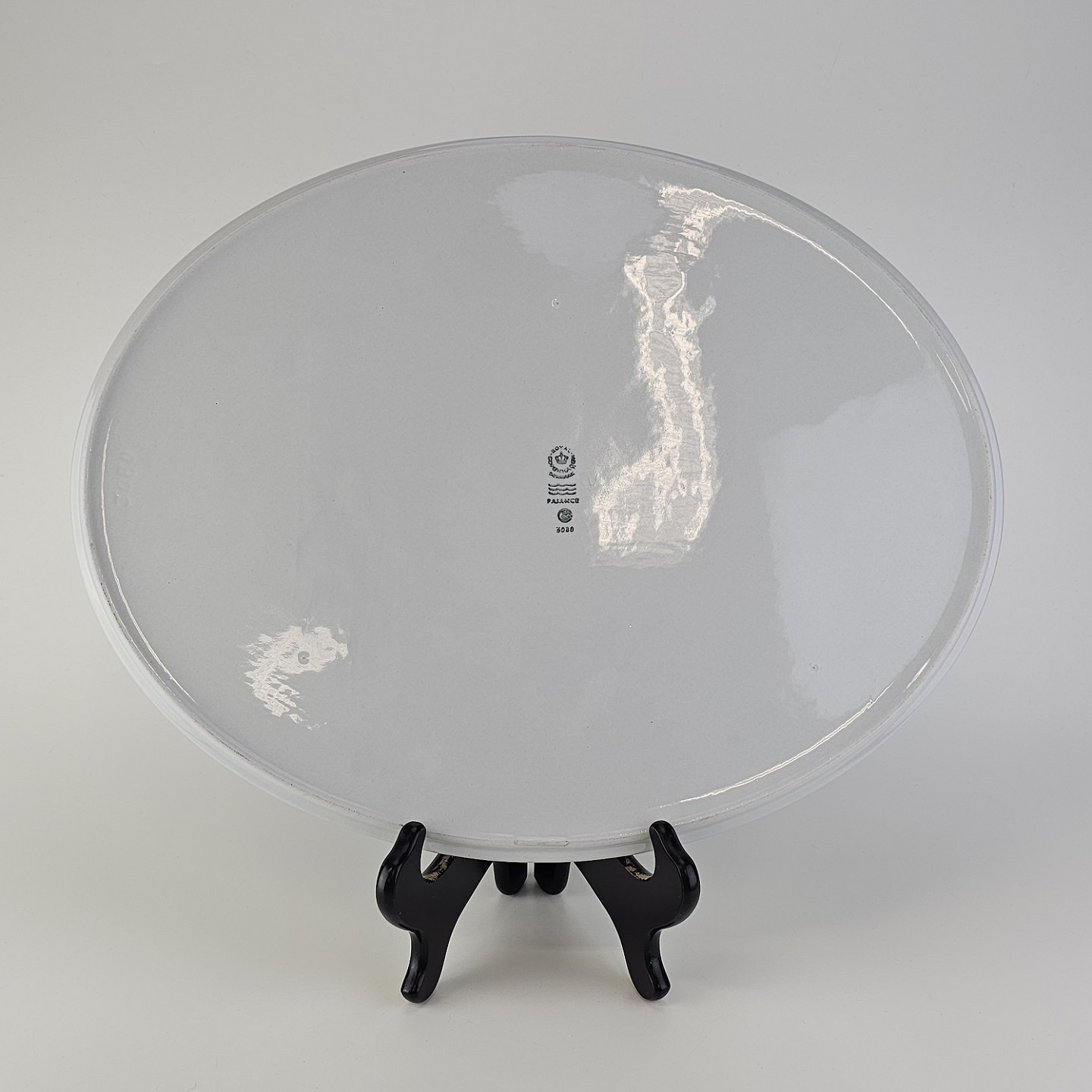 Beskrivelse: Fladt ovalt fad i fajance fra stellet Blåkant