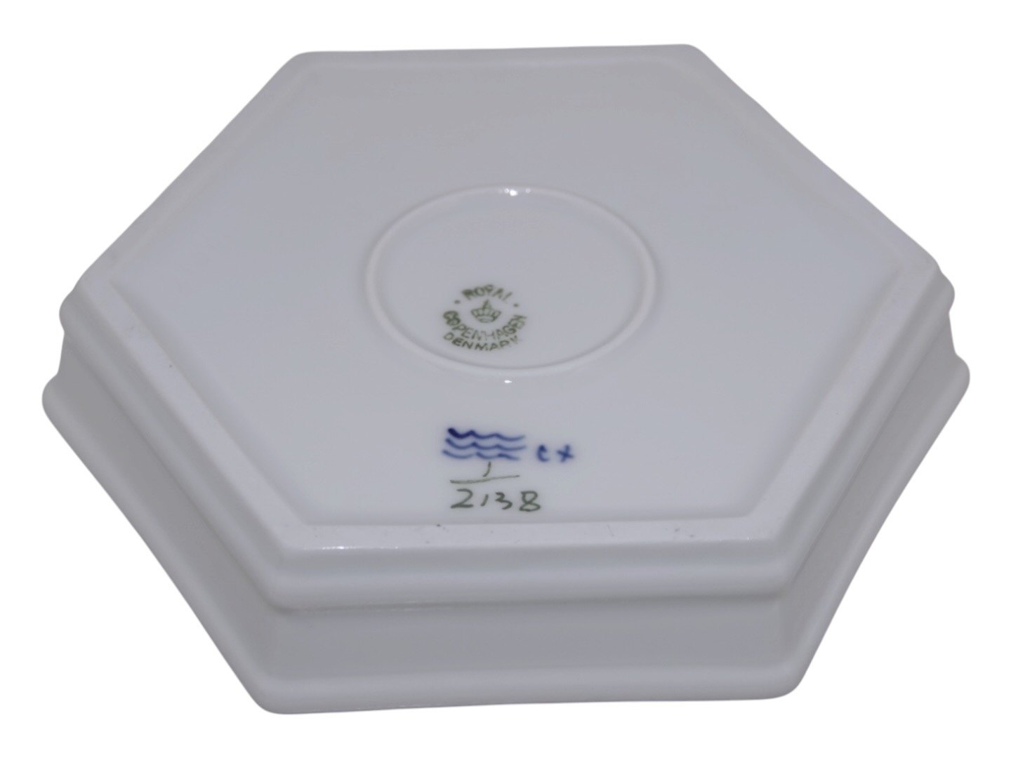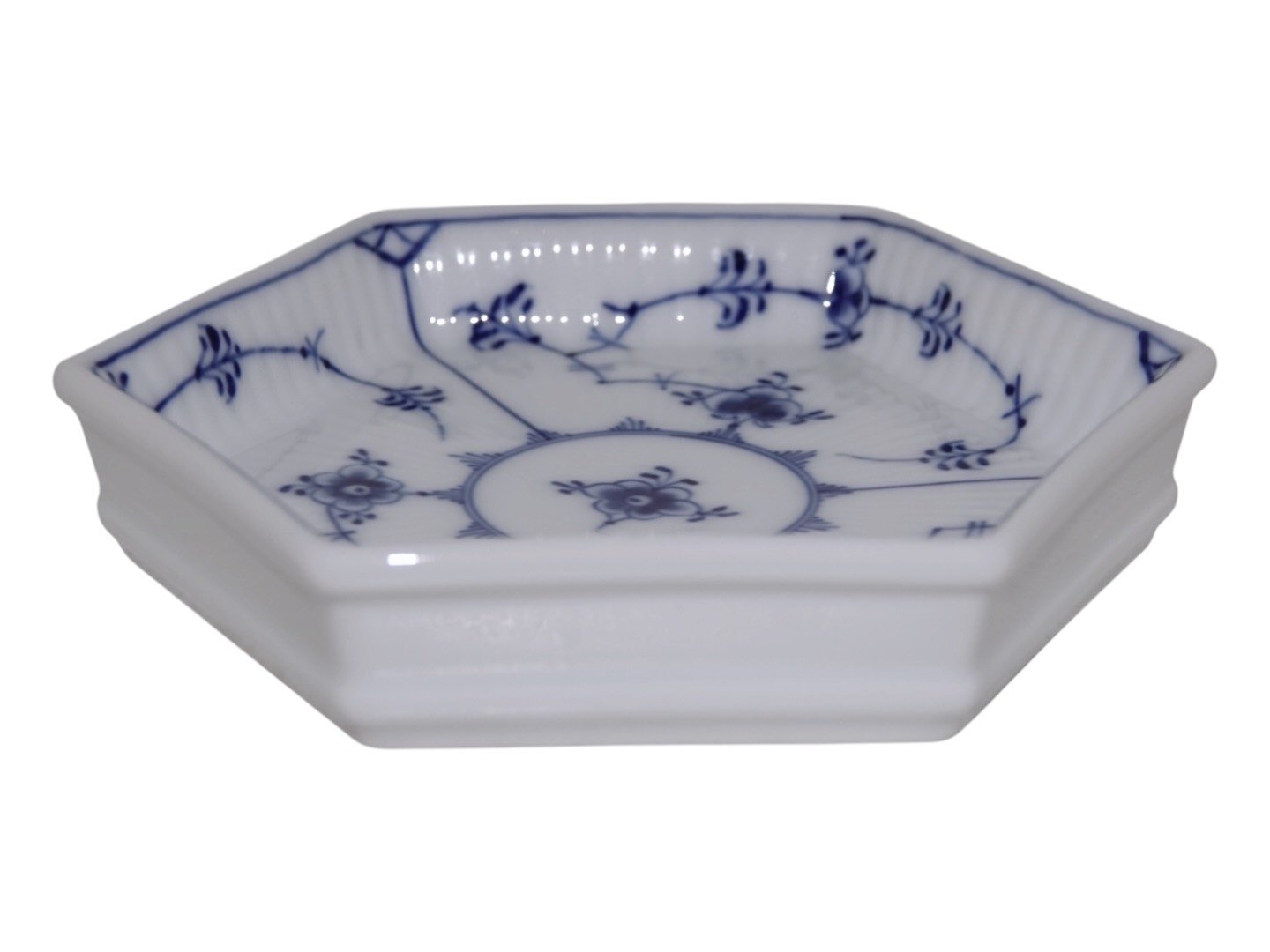 Beskrivelse: Kongelig Musselmalet Riflet, sekskantet Skål.