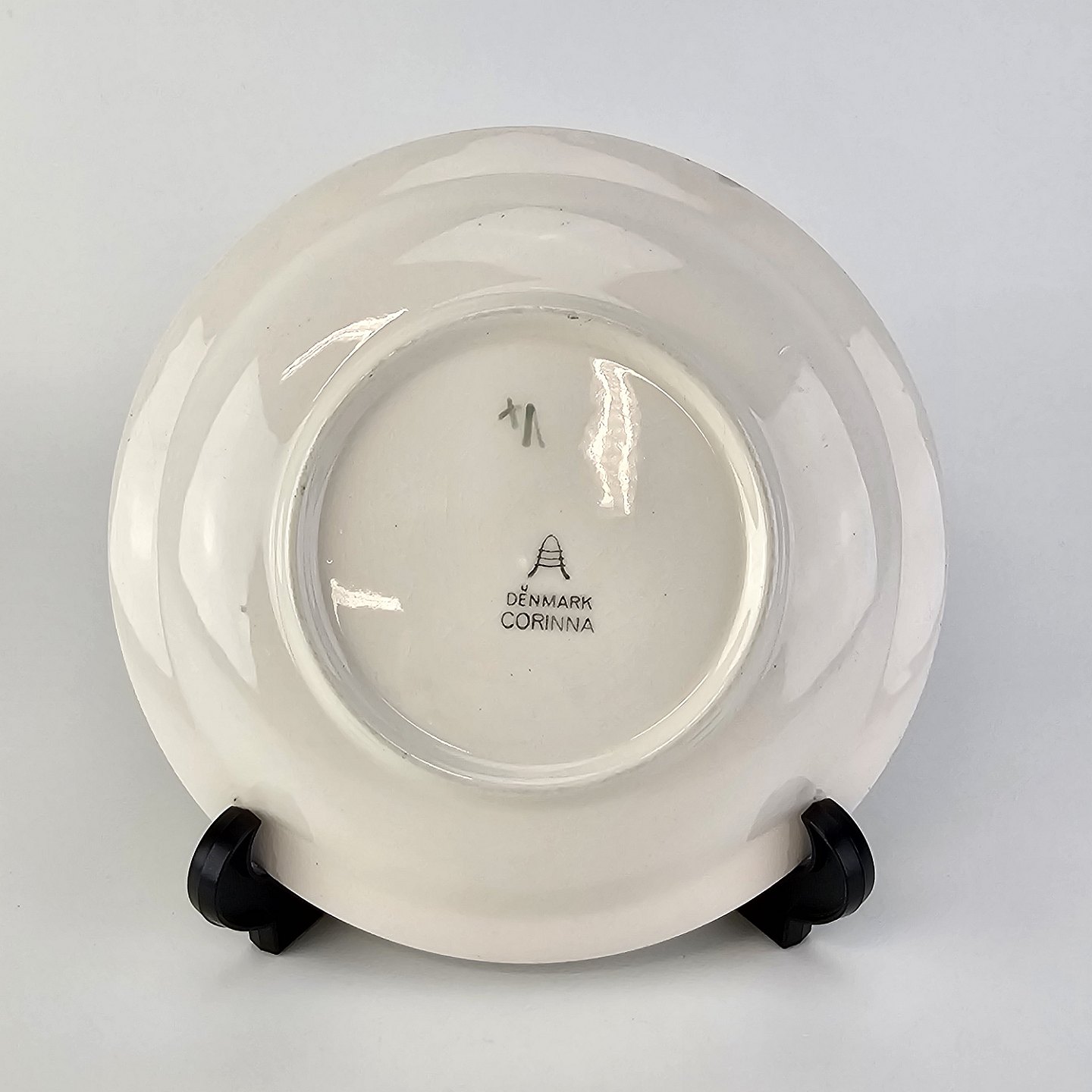Beskrivelse: Tallerken i fajance fra stellet Corinna fremstillet i perioden 1937-1966