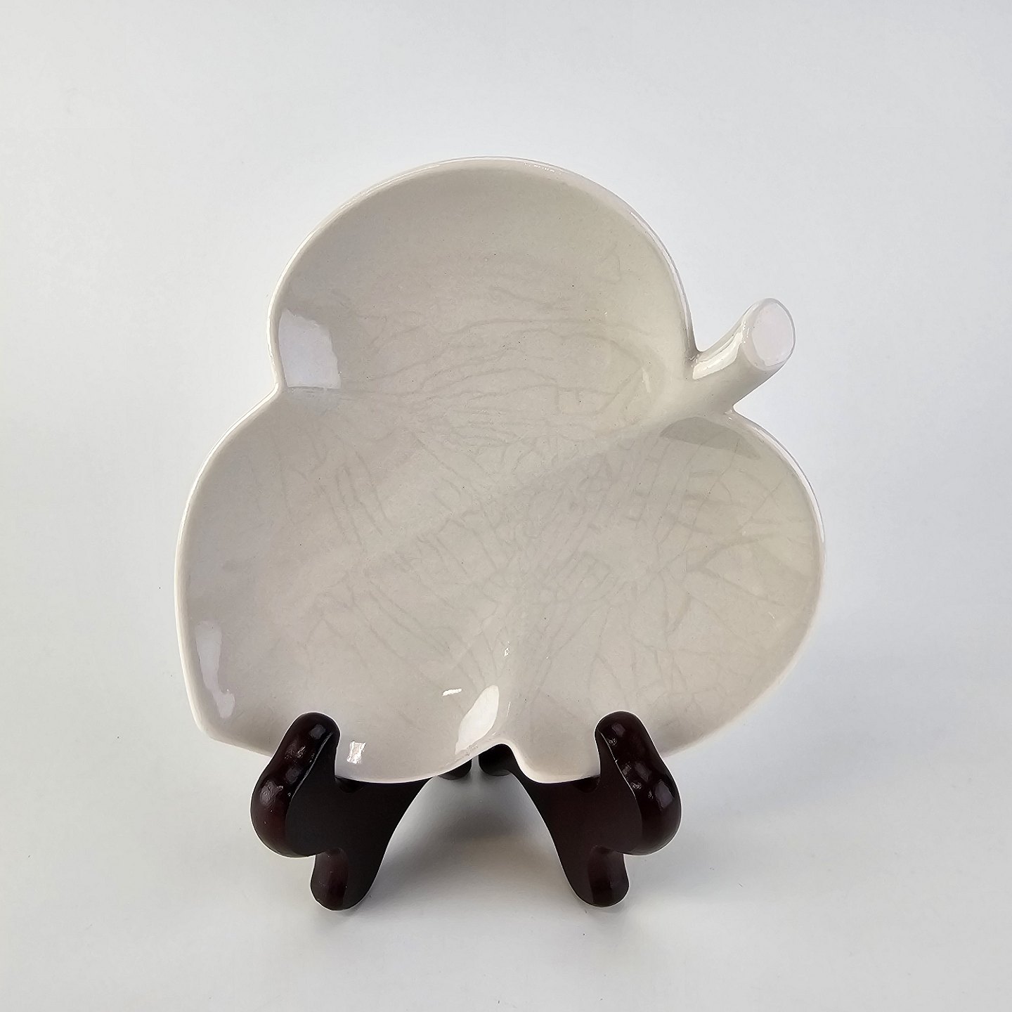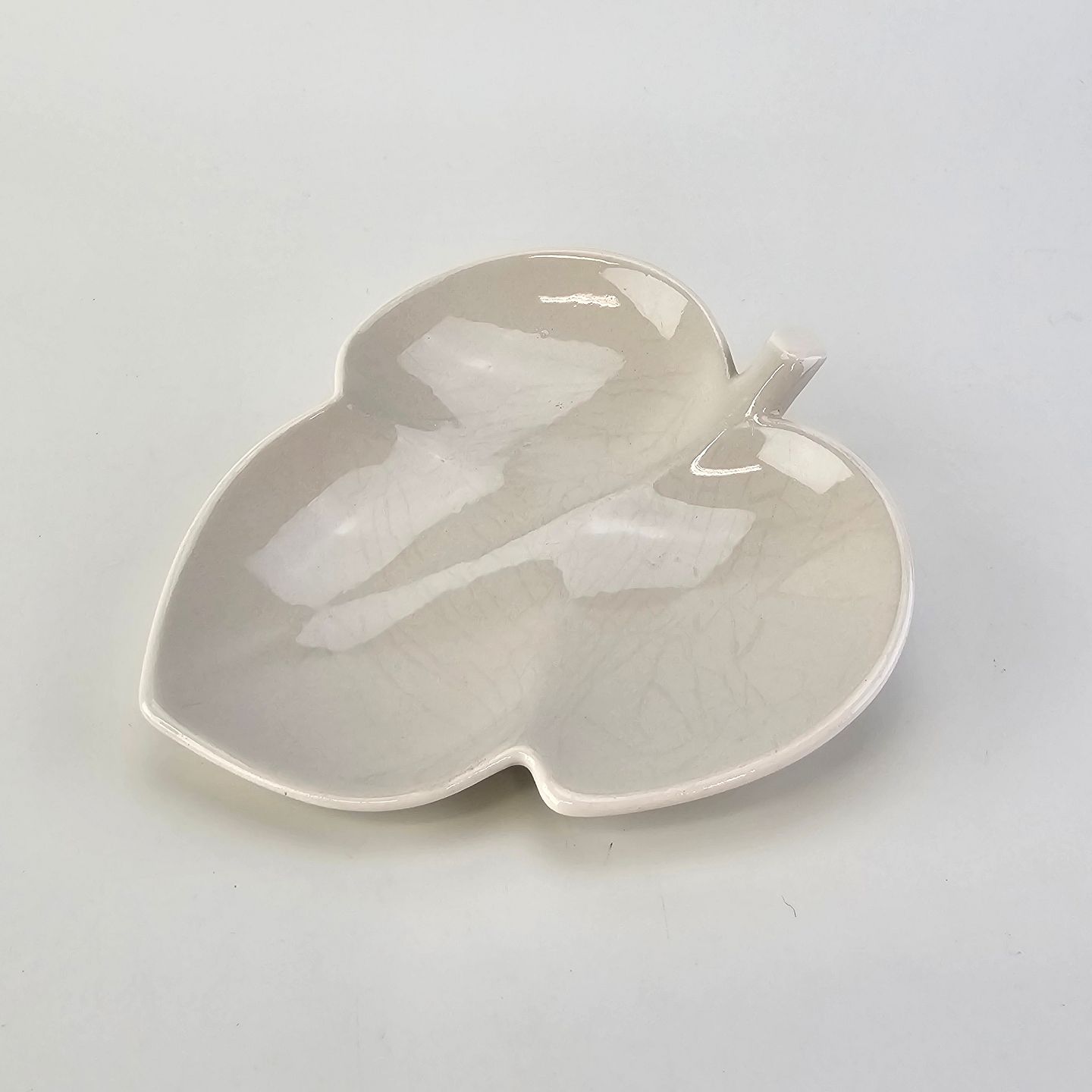 Beskrivelse: Bladformet fad i fajance fra stellet Dorrit fremstillet i perioden 1952-1966