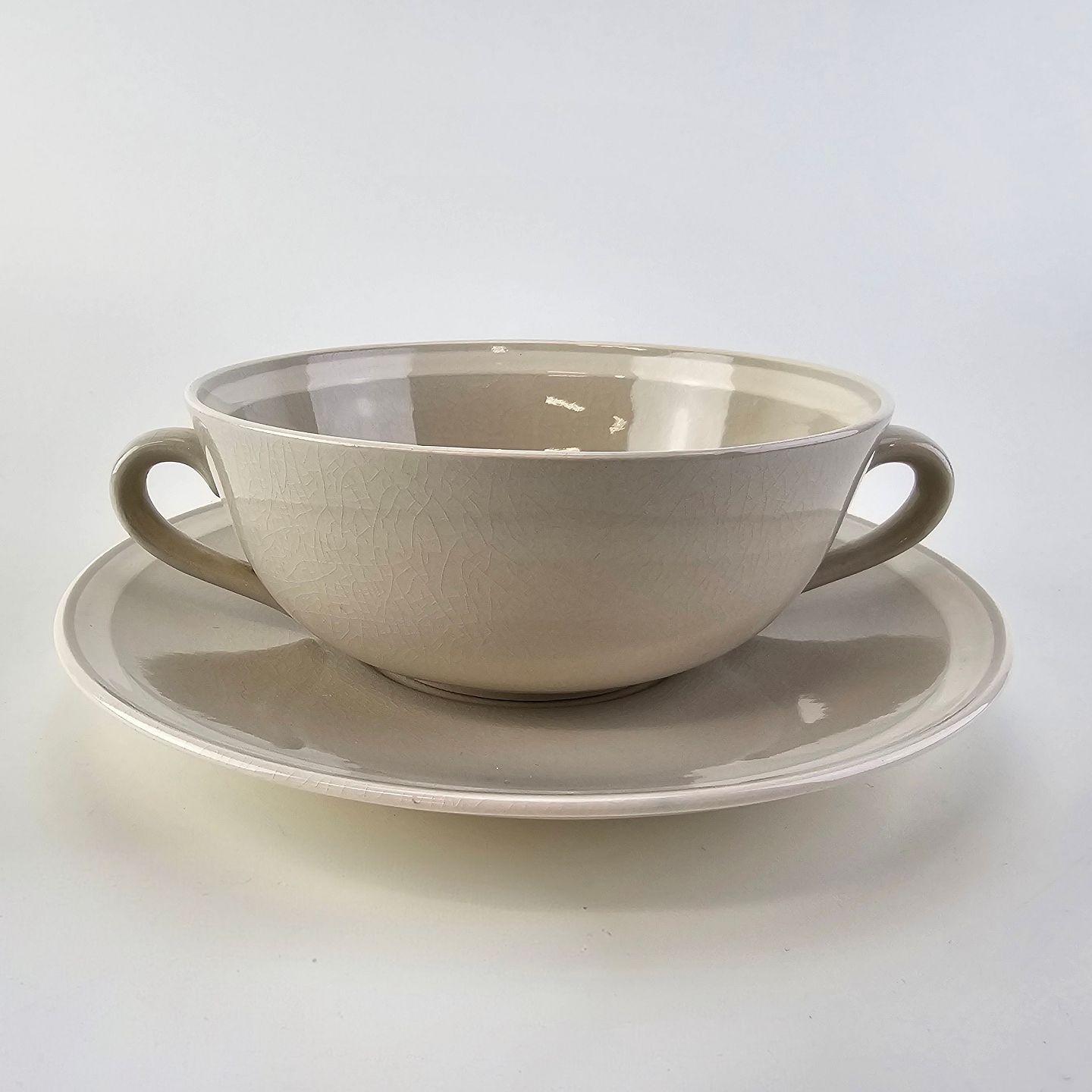 Beskrivelse: Bouillonkop med underkop i fajance fra stellet Dorrit fremstillet i perioden 1952-1966