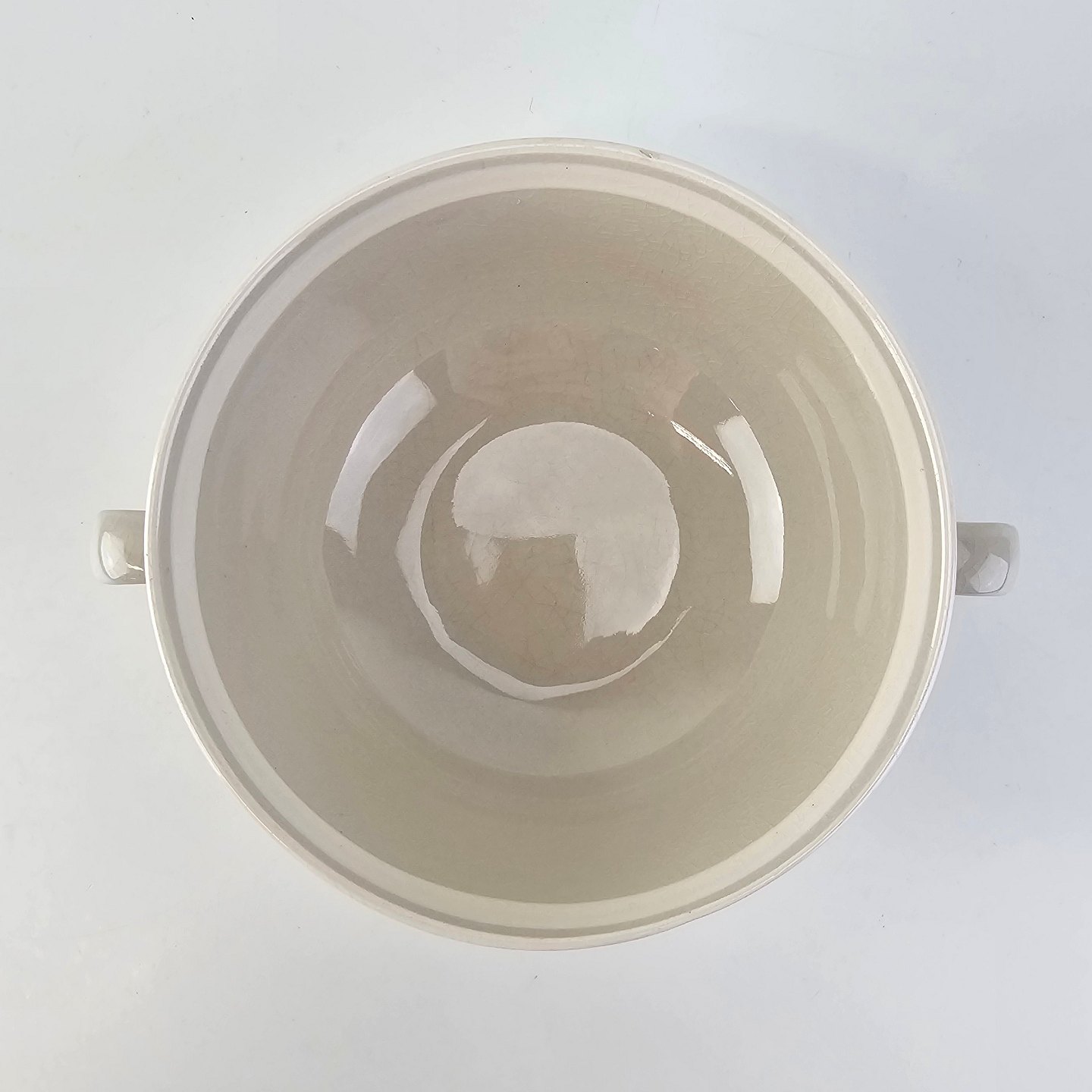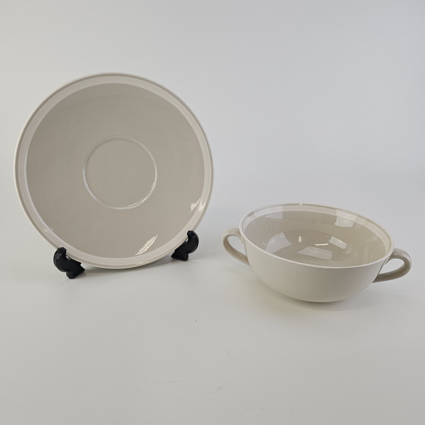 Dorrit er stel lavet på stelform D i cremefarvet fajance dekoreret med bred hvid stribe