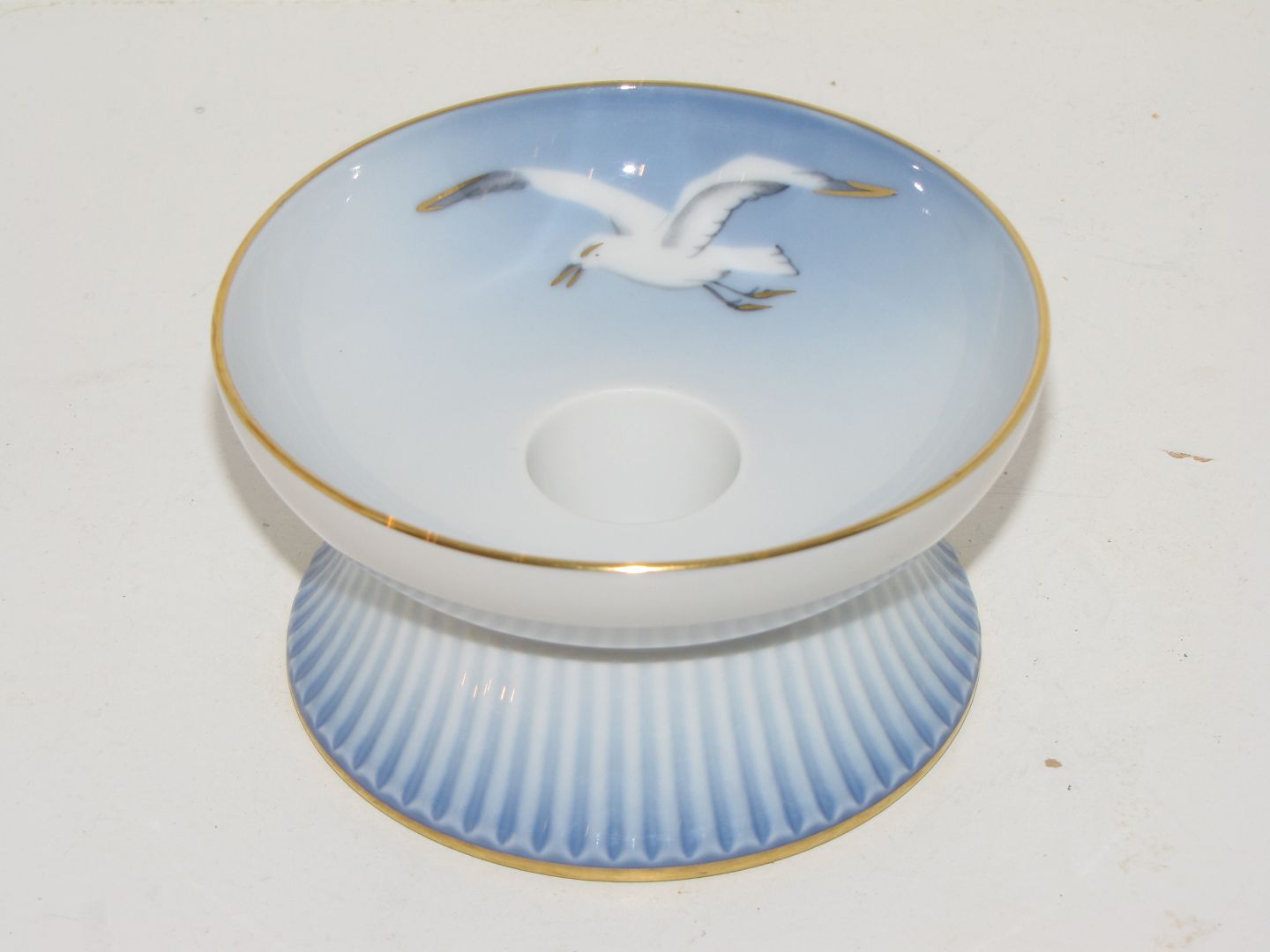 Beskrivelse: Bing & Grøndahl Måge med guldkant, lysestage.