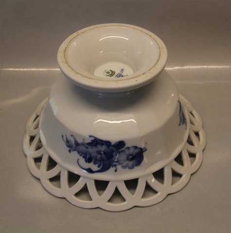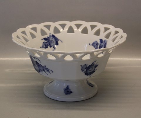 Kongelig Dansk Porcelæn Blå Blomst Kantet 8592-10 Frugtkurv med flet, høj fod 14 x 26 cm