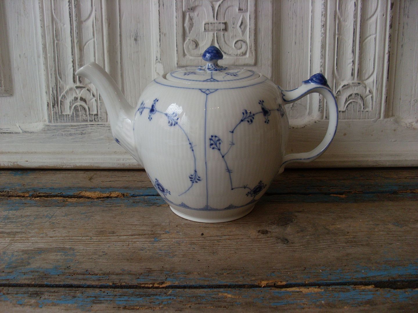 Beskrivelse: Royal Copenhagen Musselmalet riflet stor tekande