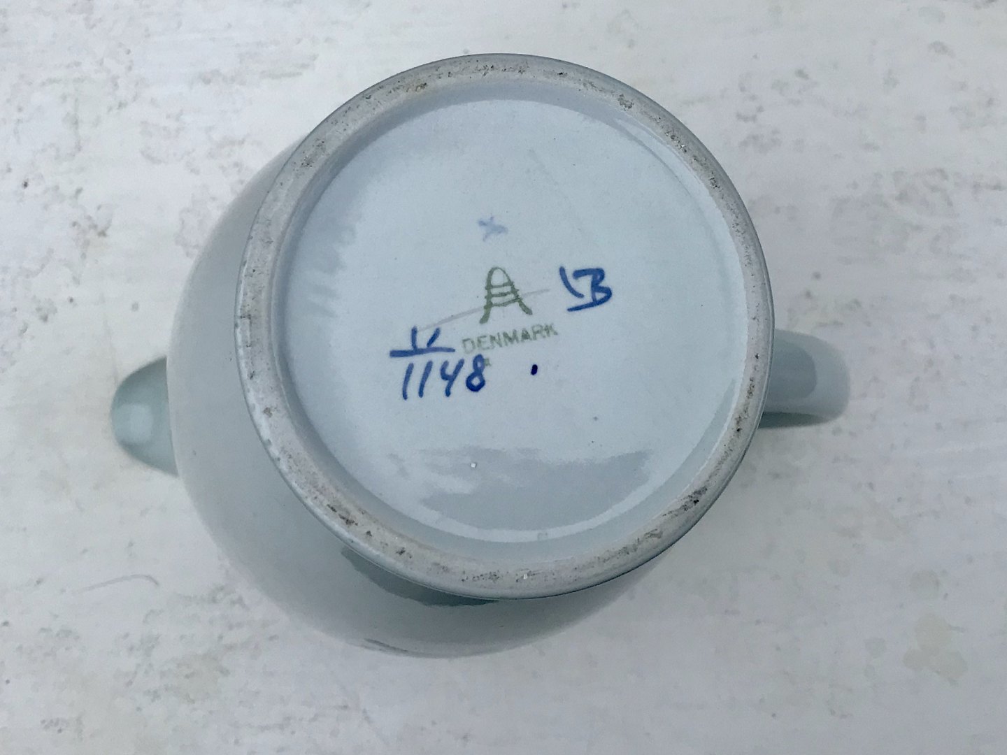 Beskrivelse: Royal Copenhagen, Aluminia, Trankebar, Mælkekande #11/1148, 20cm høj, 1.Sortering, Design Christian Joachim *Pæn stand med svage krakeleringer under glasuren*