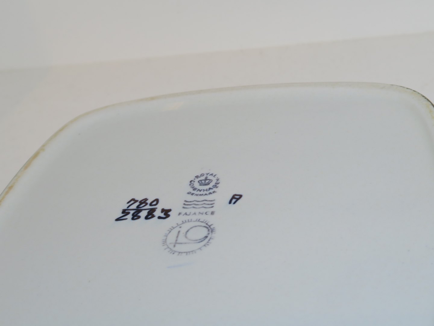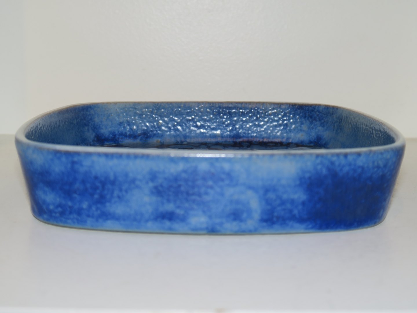 Beskrivelse: Royal Copenhagen Fajance Baca blå firkantet skål.