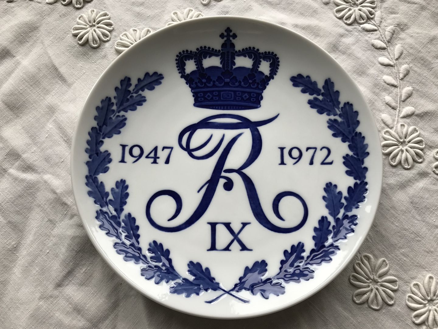 Description: Royal Copenhagen, Commemorative Plate, Frederik d.9's reign 1947-1972, 18cm in diameter, 1. Sorting *Nice condition*