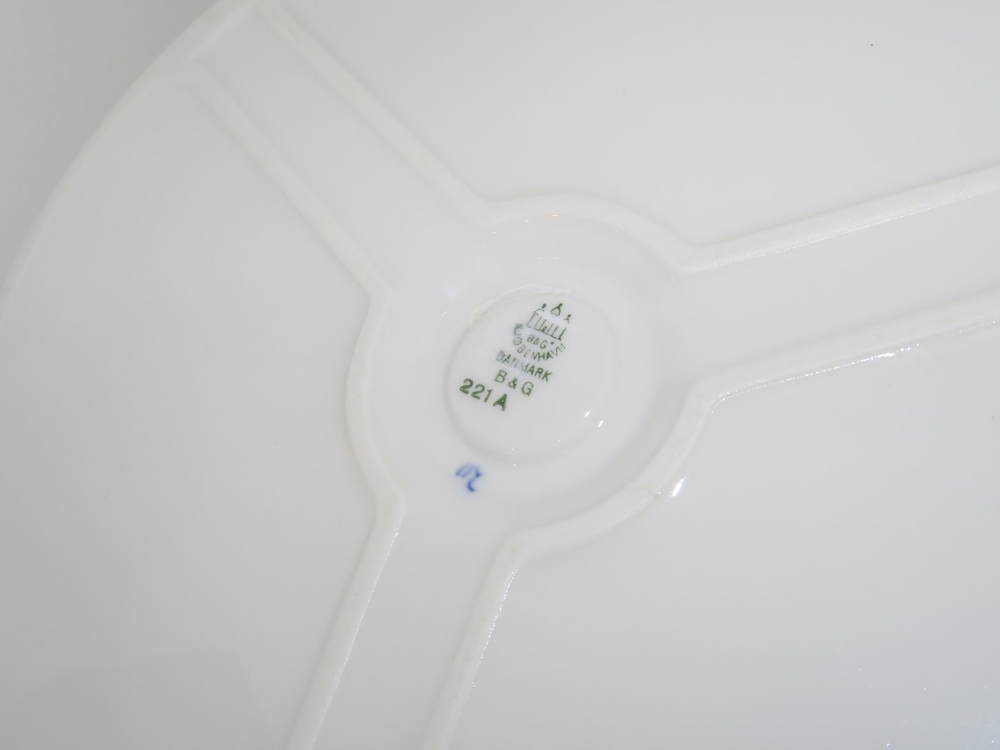 Beskrivelse: Bing & Grøndahl Empire, tre-delt rundt fad med knob.