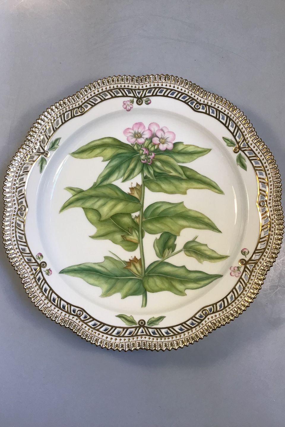 Beskrivelse: Royal Copenhagen Flora Danica Stort Gennembrudt Fad no. 384 eller 3529