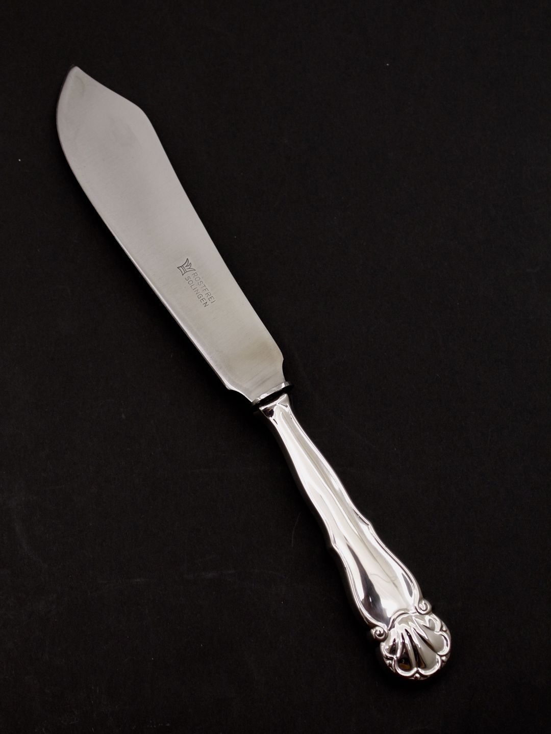 : Lagkagekniv 28 cm. tretårnet sølv og stål Nr. 380807