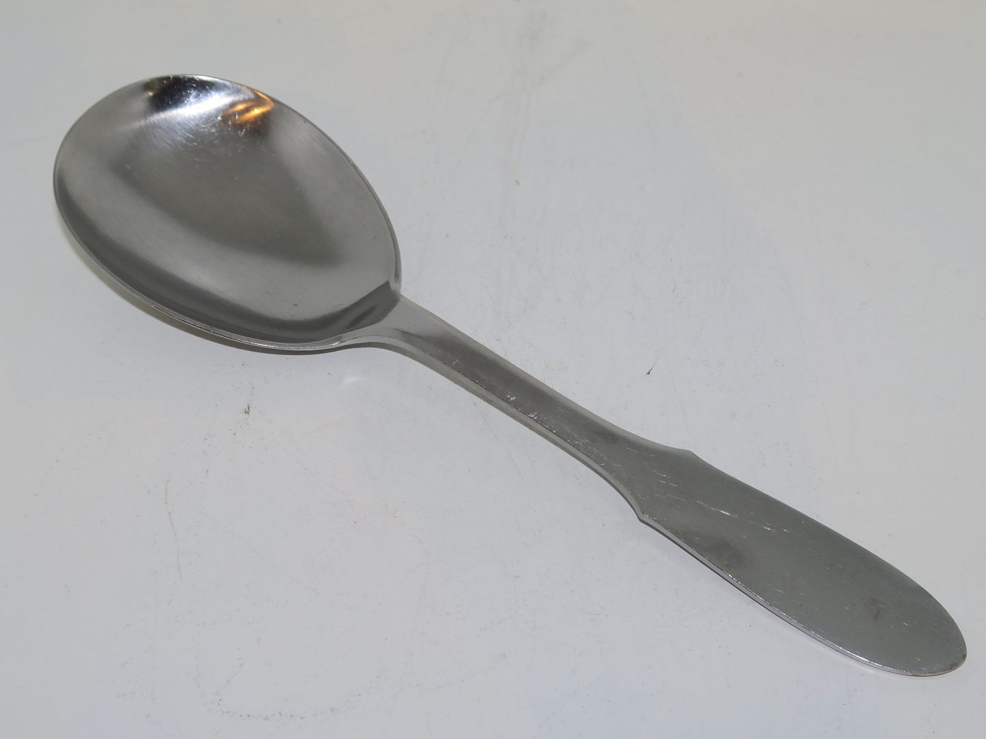 Beskrivelse: Georg Jensen Mitra stål bestik, stor serveringsske.