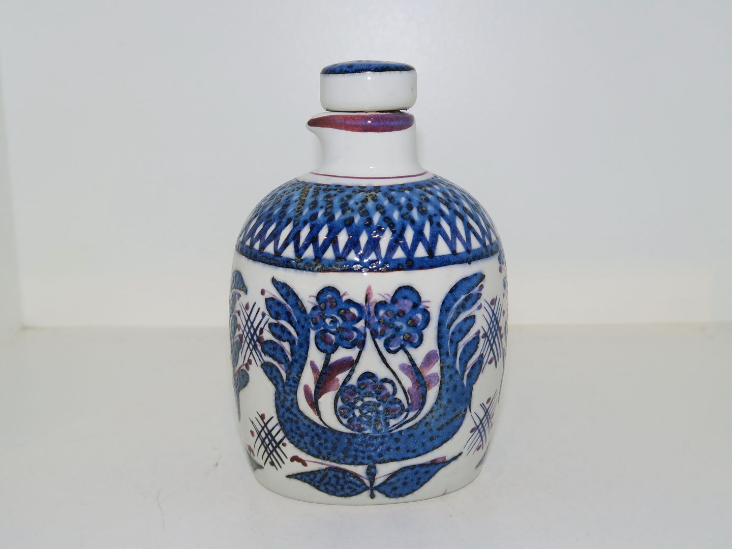 Beskrivelse: Aluminia Fajance Tenera flakon.