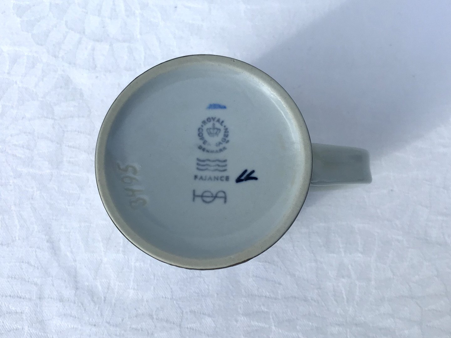 Beskrivelse: Royal Copenhagen, Aluminia, lille årskrus, 1971, 7,5cm høj, Design Hans Andersen *Perfekt stand*