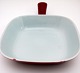 Kasserolle. Længde 22 cm. Højde 7,5 cm. 14x1 cm. Brændingsfejl i bund. Pris: 150 kr.