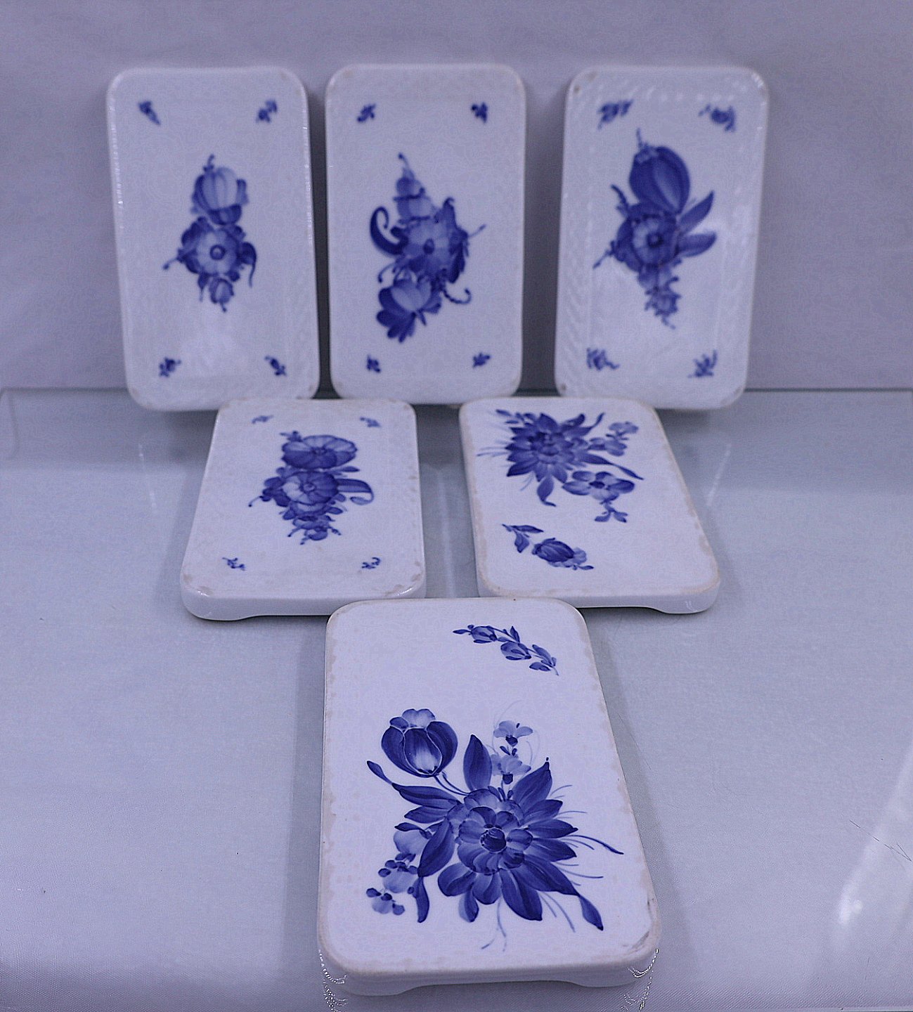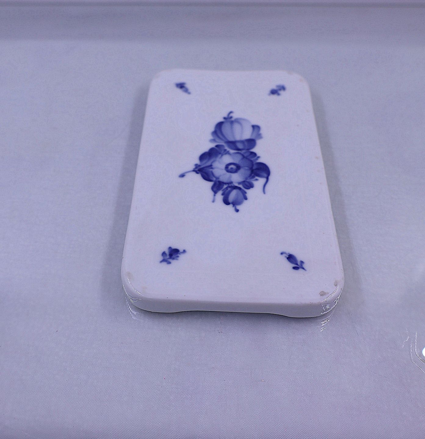 Beskrivelse: Royal Copenhagen. Smørebræt/bordskåner, nr. 10/8170, blå blomst med flettet kant. Smørebræt/bordskåner er malet mellem 1910-1914