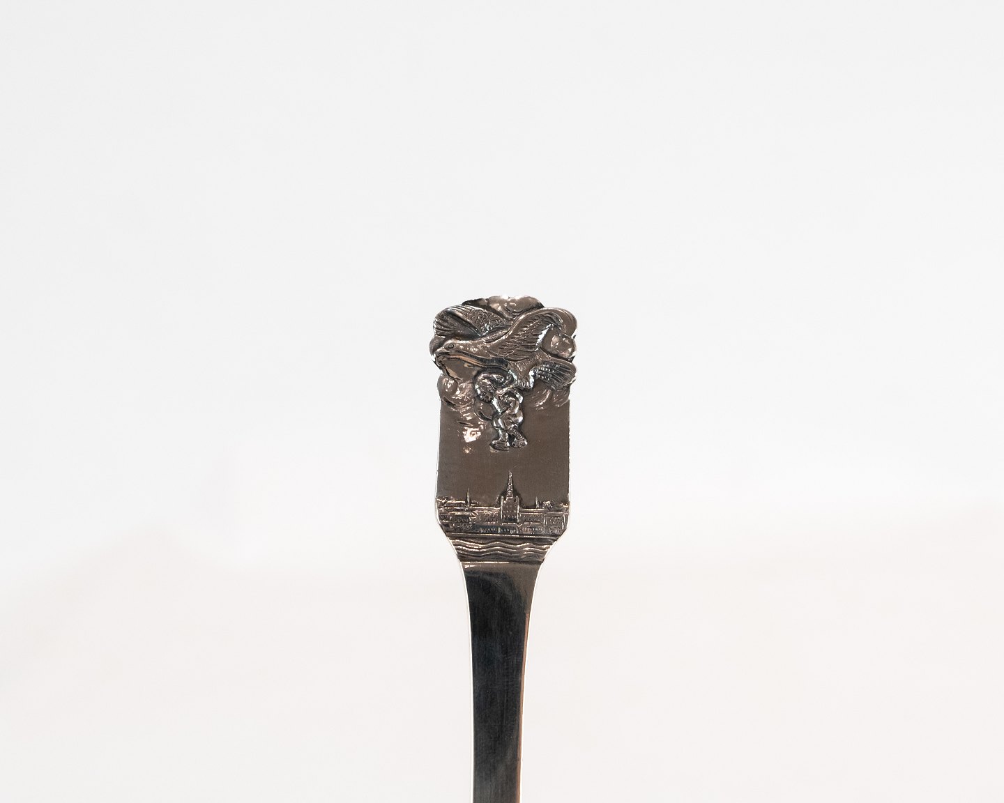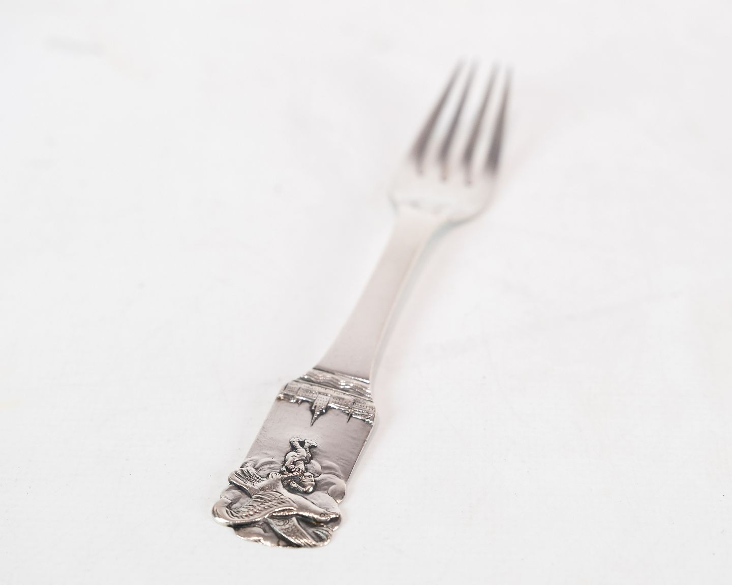 Description: Children's spoon with motif of H.C. Andersen in hallmarked silver.
