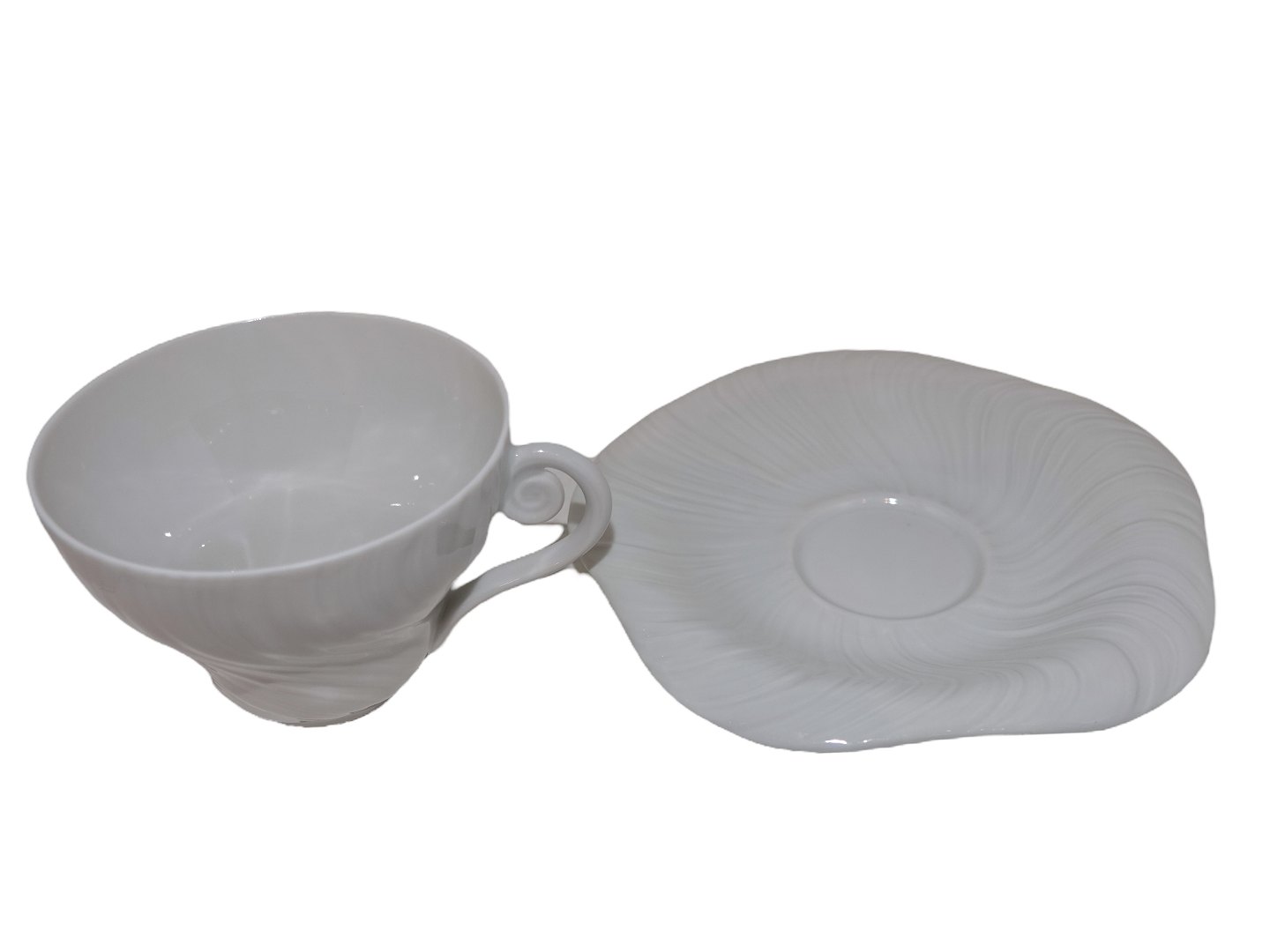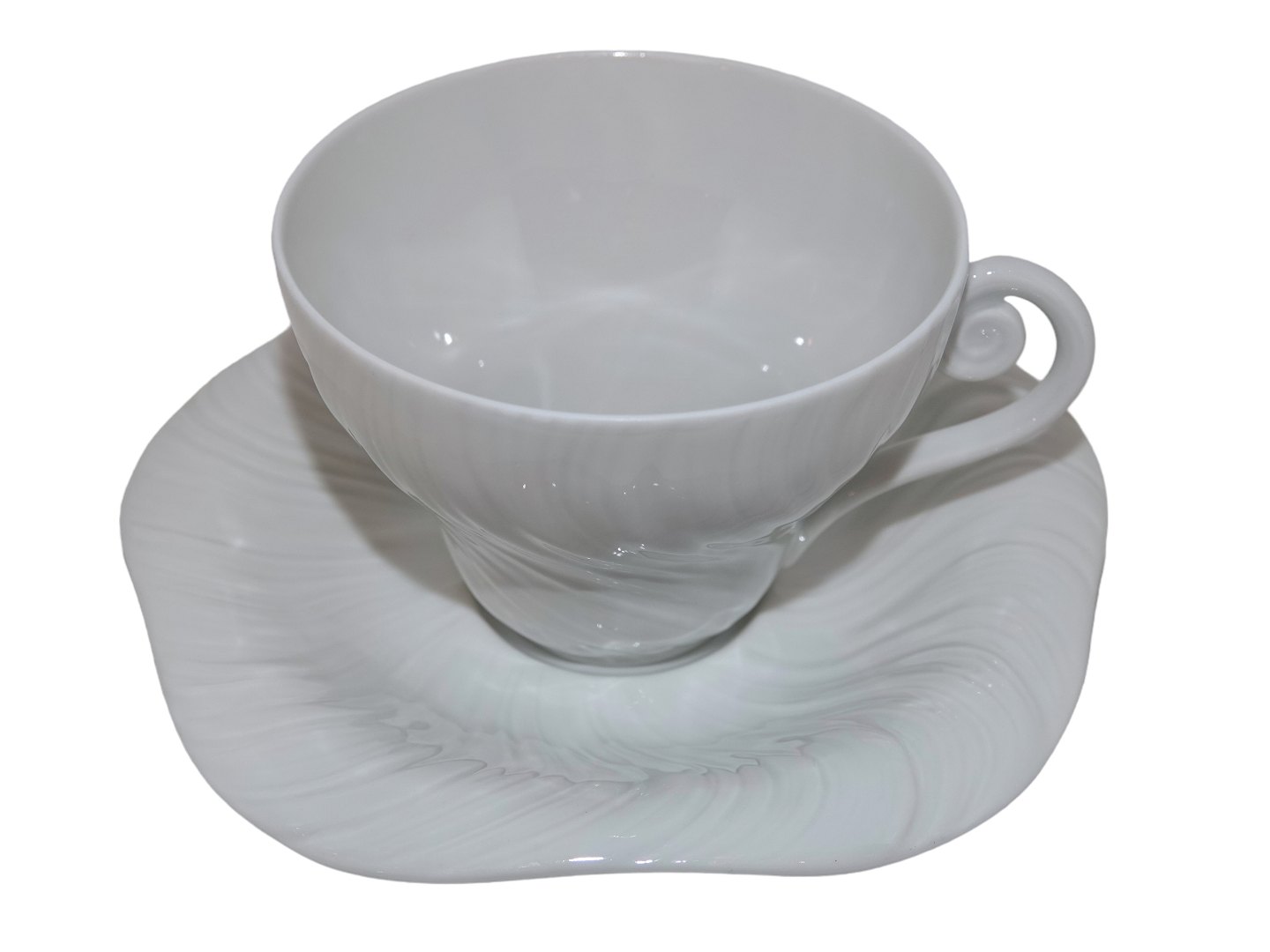 Beskrivelse: Royal Copenhagen Hvid Konkylie, stor kaffekop med tilhørende underkop.