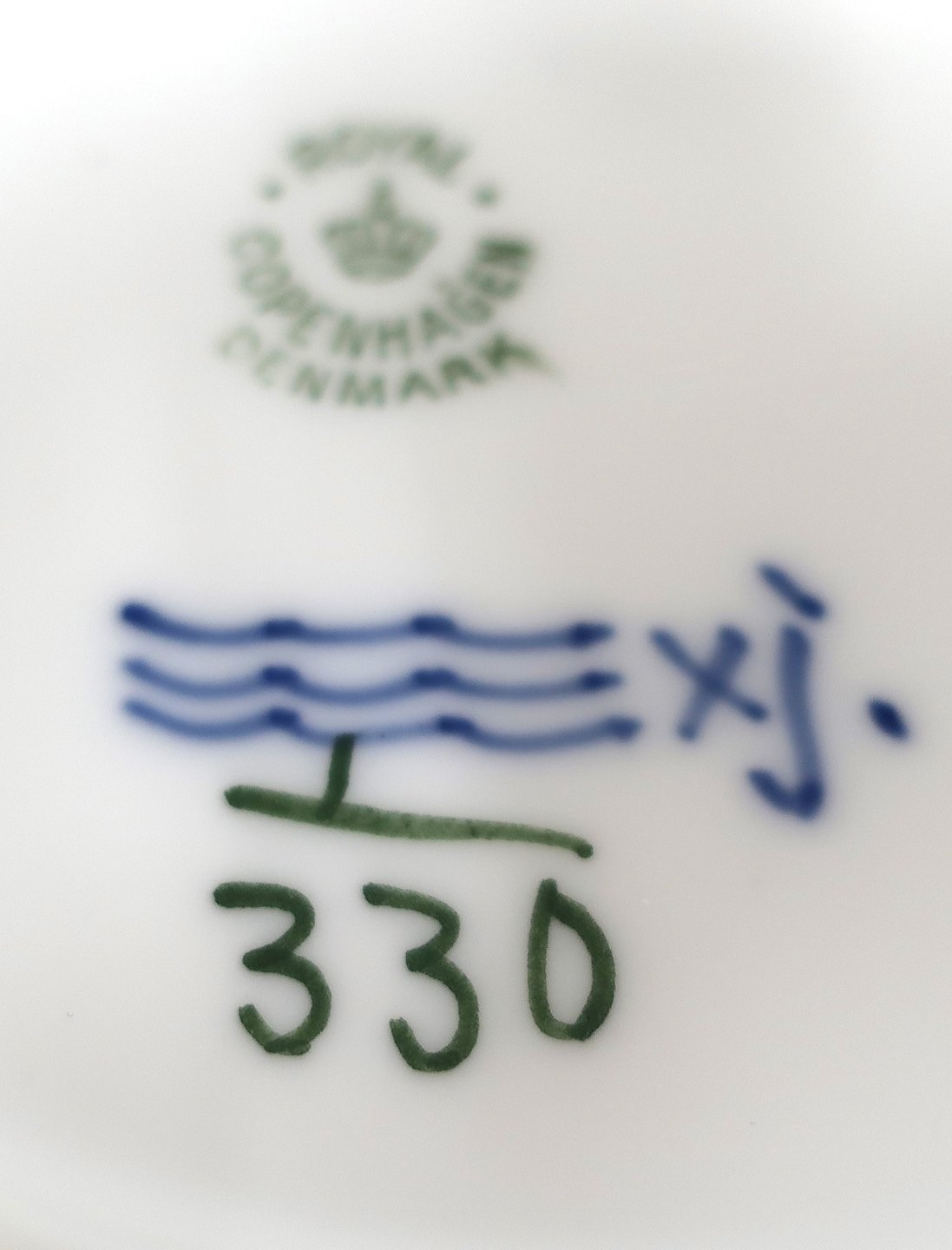 Description: Royal Copenhagen. Hotel porcelæn. Musselmalet, riflet. Frokosttallerken. Model 330. Diameter 20 cm. (1 sortering)