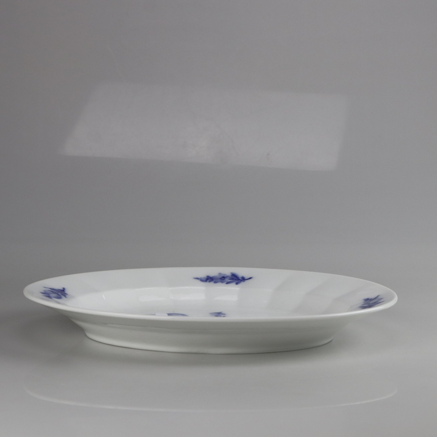 Description: Ovalt fad fra stellet Blå blomst kantet no 10/8002