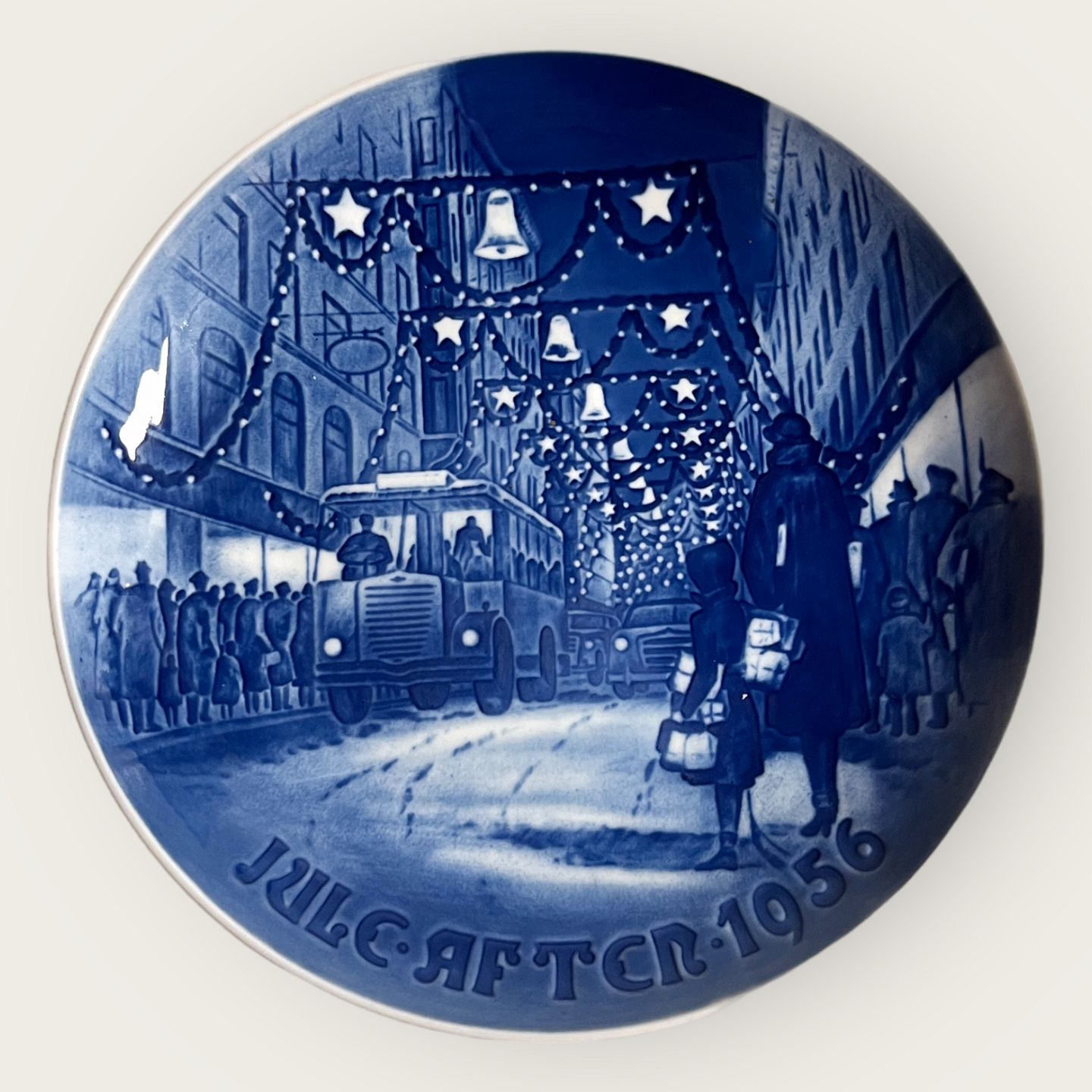 Beskrivelse: Bing & Grøndahl, Juleplatte, 1956 "Byens lys" 18cm i diameter, 1.sortering, Design Kjeld Bonfils *Perfekt stand*