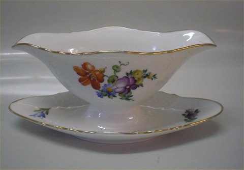 Royal Copenhagen Frijsenborg 1871-910 Sauceskål, oval 12 x 24 cm Blomstermotiver på svejfet stel med guldkant.