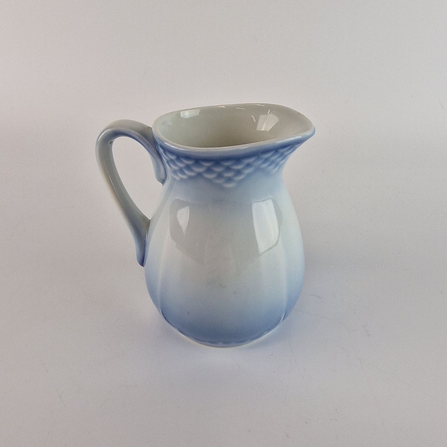 Beskrivelse: Flødekande af hotelporcelæn fra stellet Blå tone. No 802