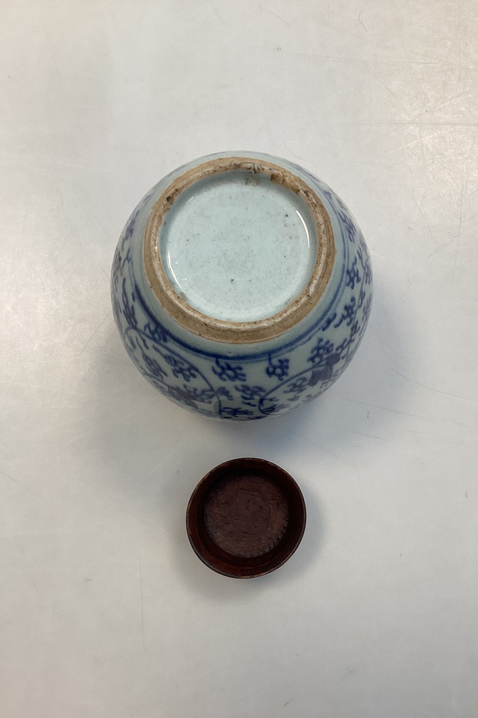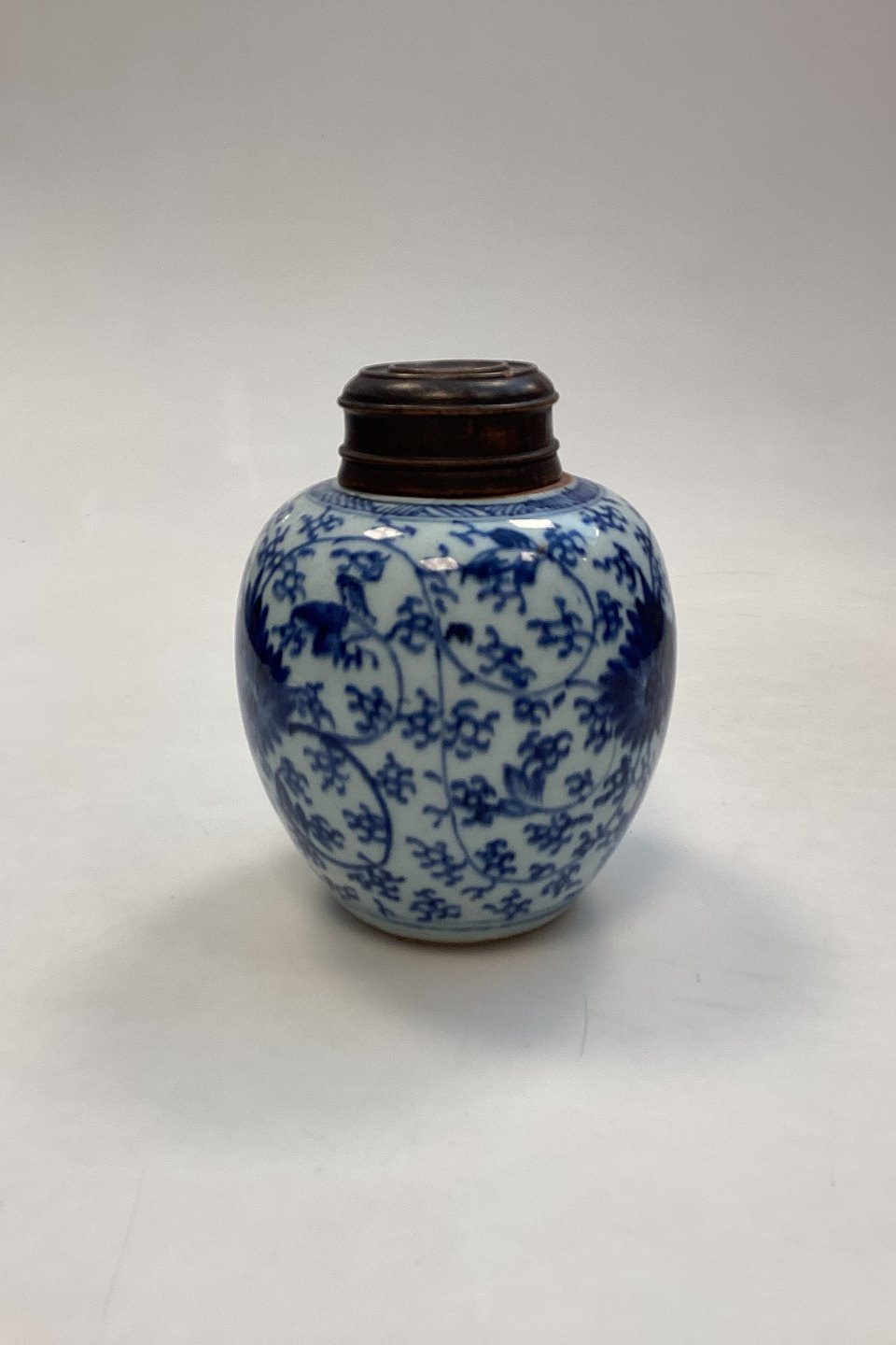 Beskrivelse: Orientalsk Kinesisk Vase / Ingefærkrukke med motiv i blå og hvid - Jiaqing perioden 1795-1820?
