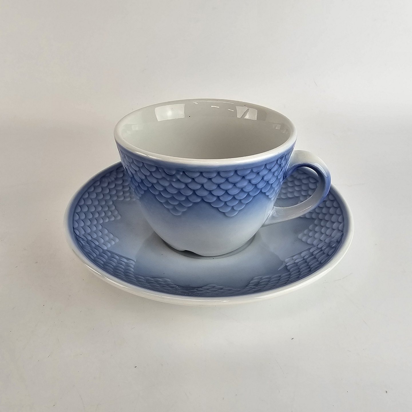 Beskrivelse: Te kop og underkop fra stellet Blå Tone. Nr. 746