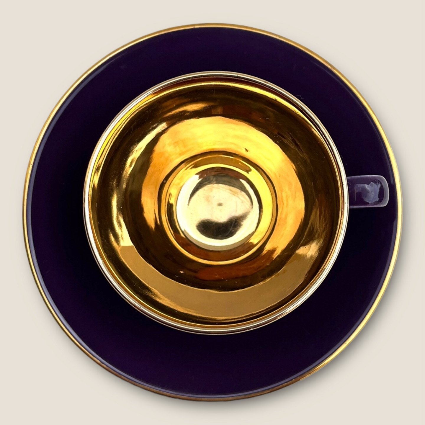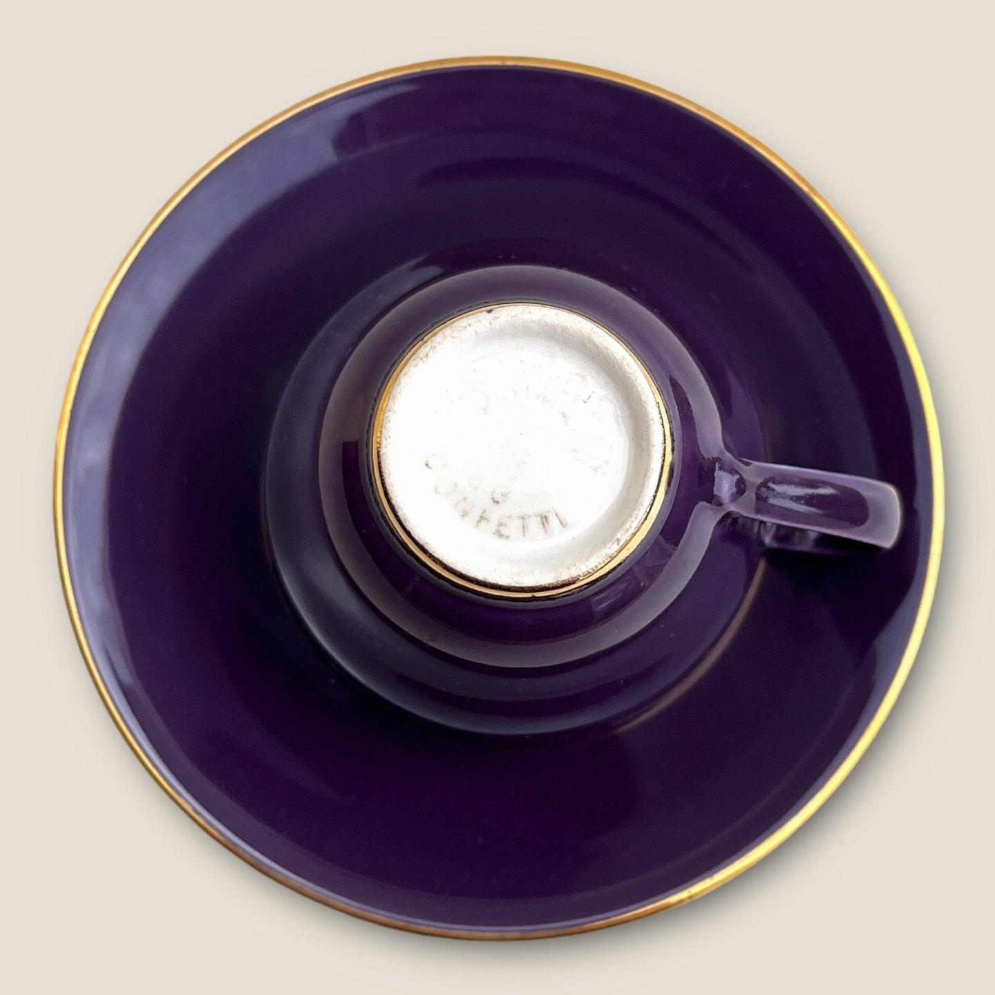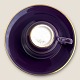 Description: Royal Copenhagen, Aluminia, Confetti, Mokkatasse, Lila, 7cm Durchmesser, 5,5cm hoch, Untertasse mit Goldrand *Guter Zustand*