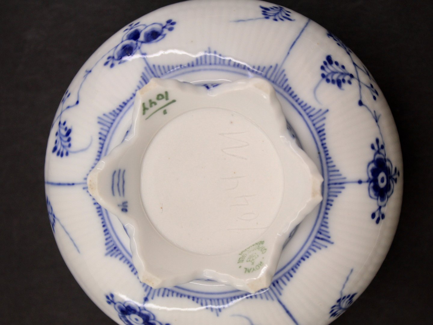 Beskrivelse: Royal Copenhagen Musselmalet helblonde sjælden buketholder