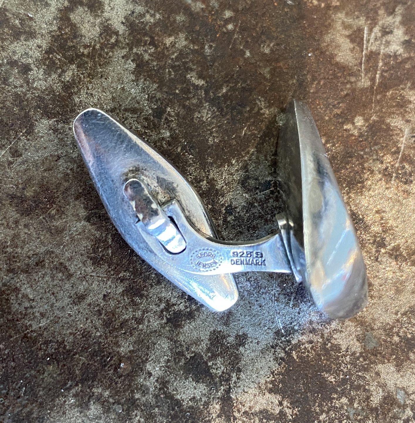 Beskrivelse: En enkelt manchet knap design no 88 tegnet af Henning Koppel for Georg Jensen i Sterling sølv.