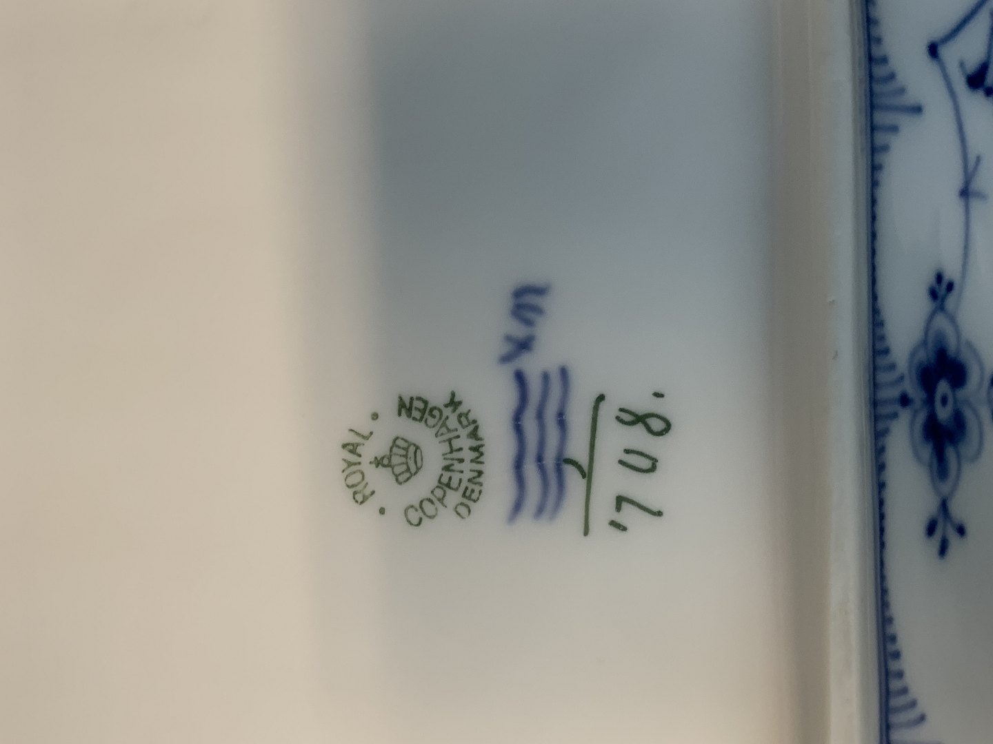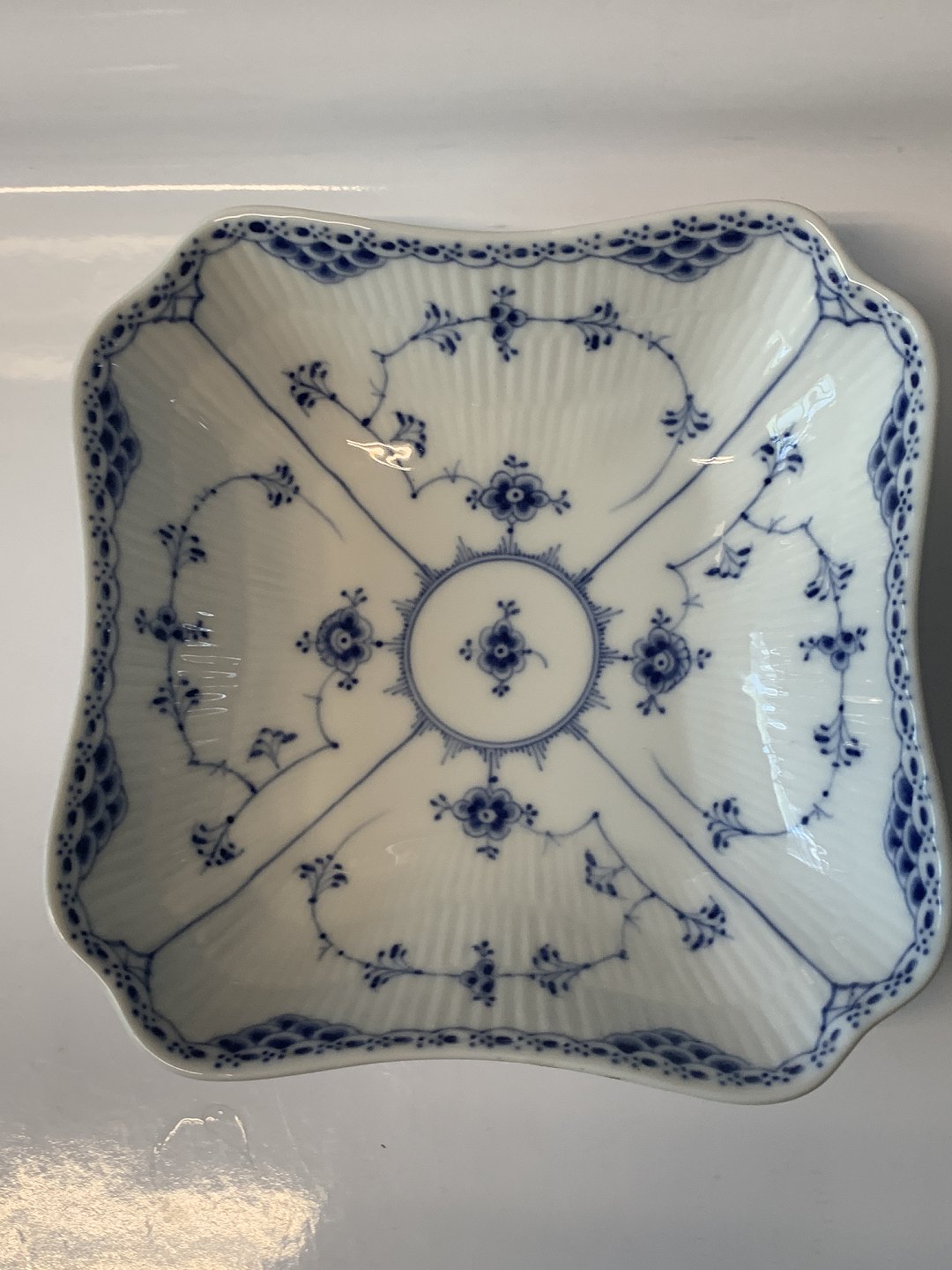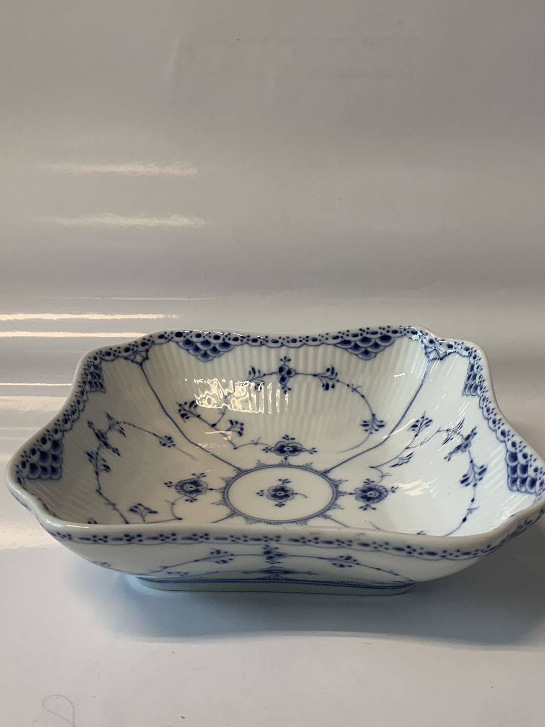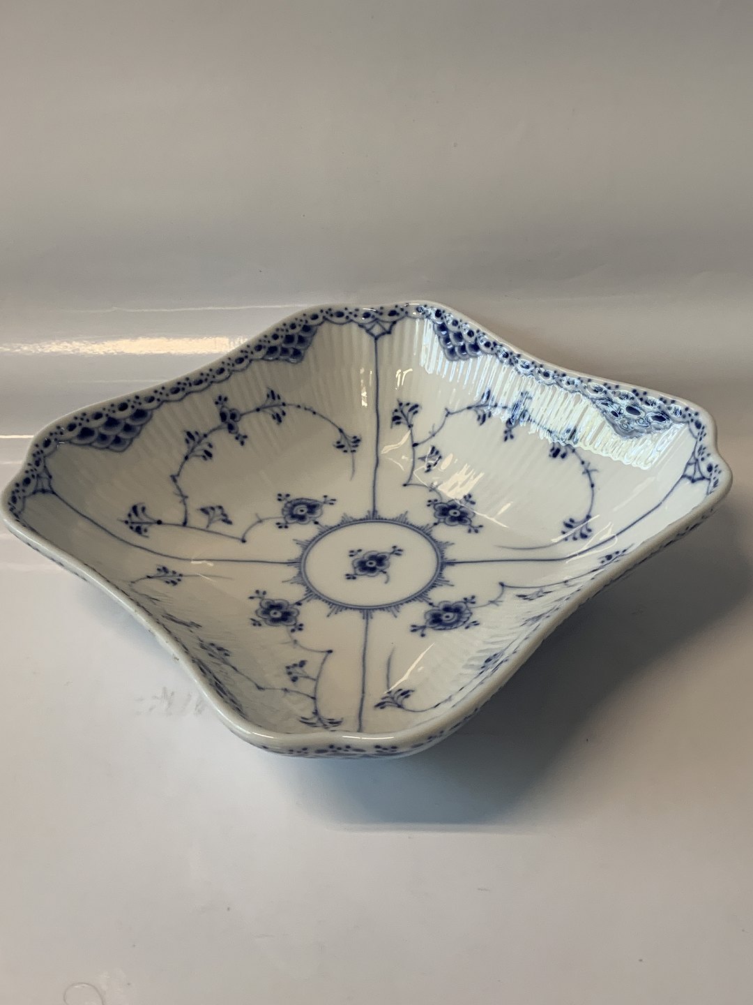 Description: Royal Copenhagen Blue Fluted Half Lace, Large Square Potato Bowl.