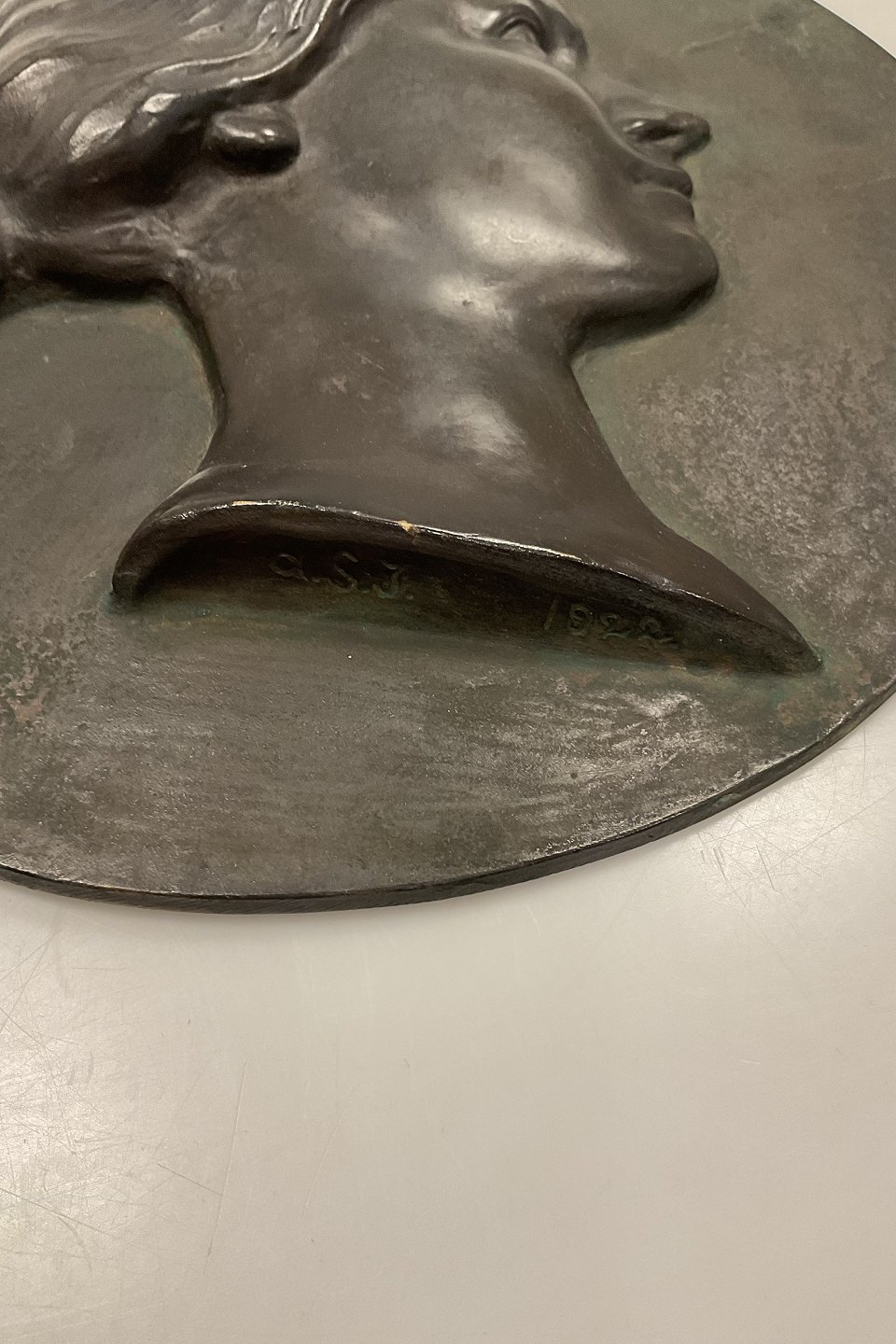 Danish Silhouet Portrait Young Lady in Bronze Signed by A.S. Jag 22