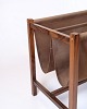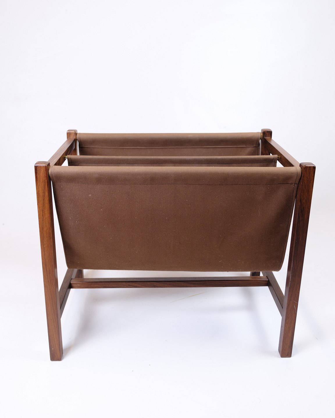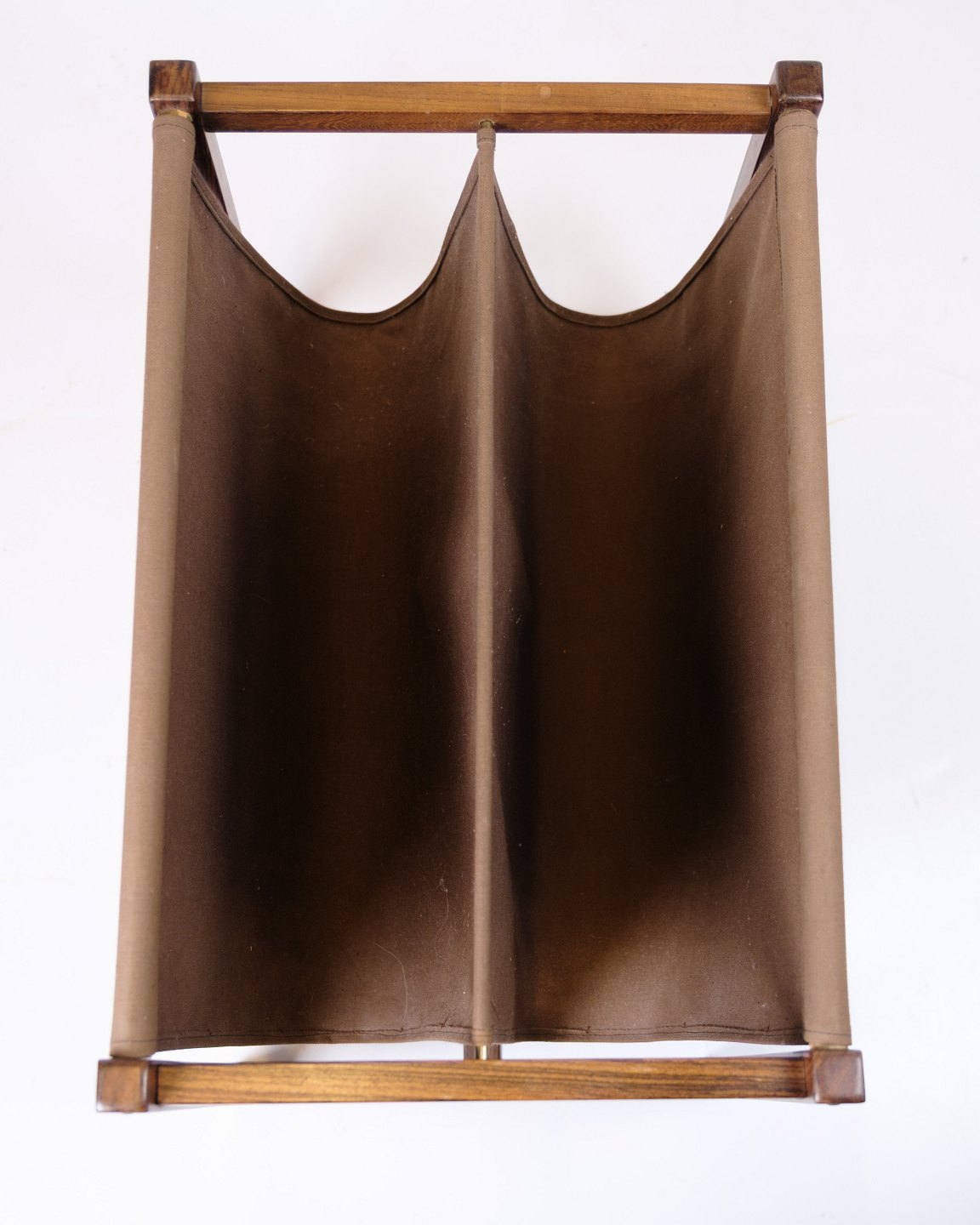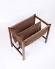 Description: Newspaper and magazine holder in rosewood and brown canvas. Danish design from the 1960s.