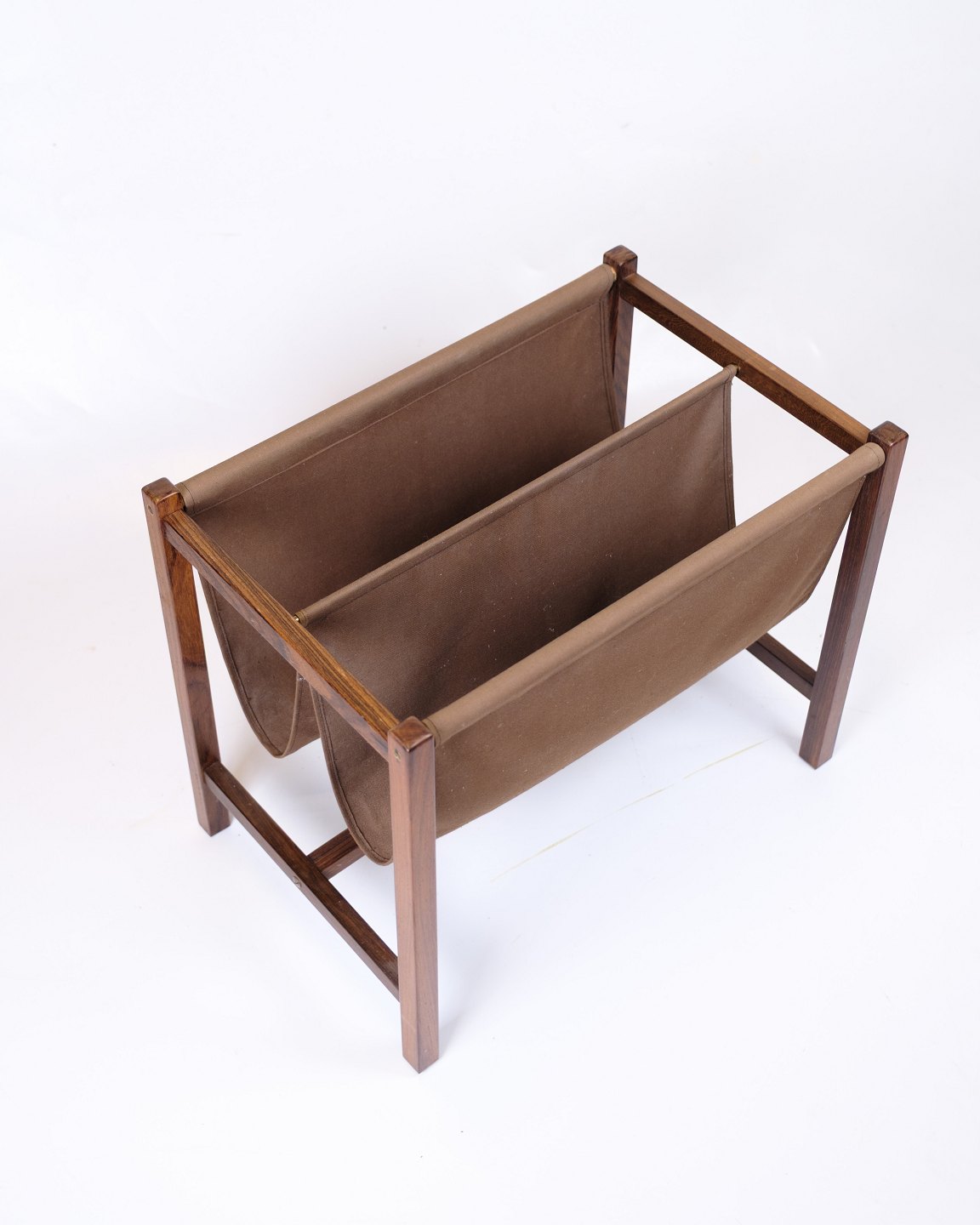 Newspaper/Magazine Holder - Rosewood and Brown Canvas - Danish Design - 1960s