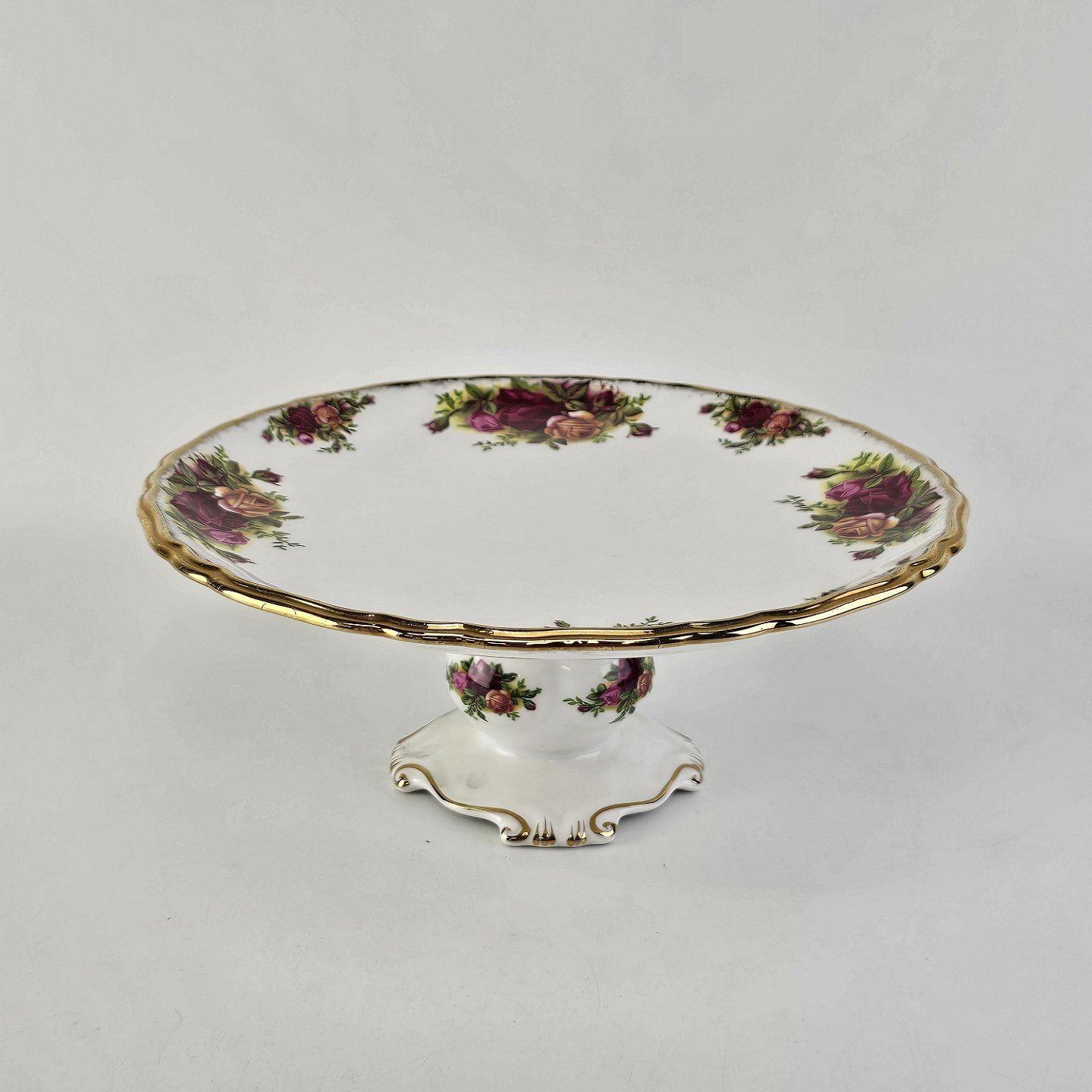 Beskrivelse: Kageopsats i porcelæn fra det engelske stel Old Country Roses