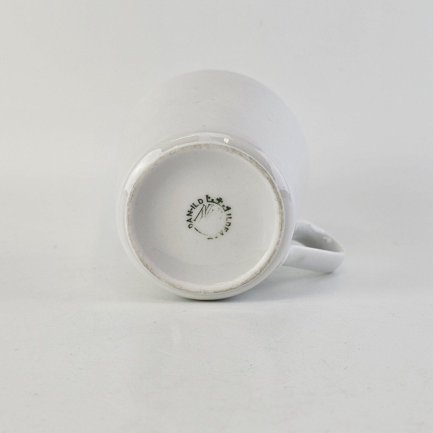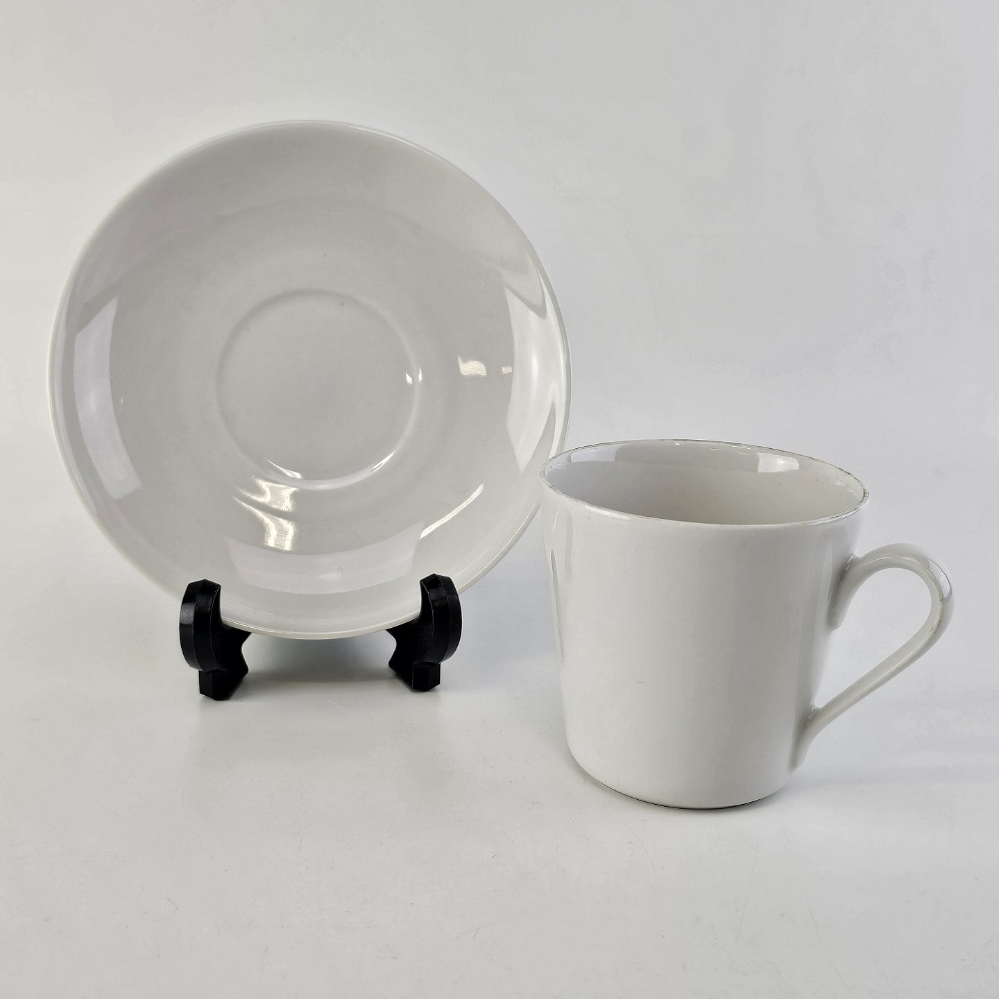 Beskrivelse: Kop med underkop i porcelæn fra stellet Hvid Glasurfarvet