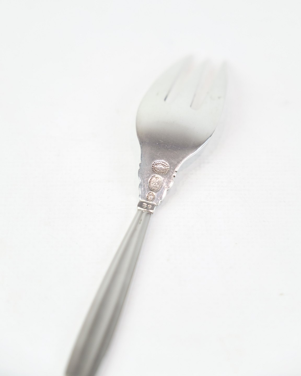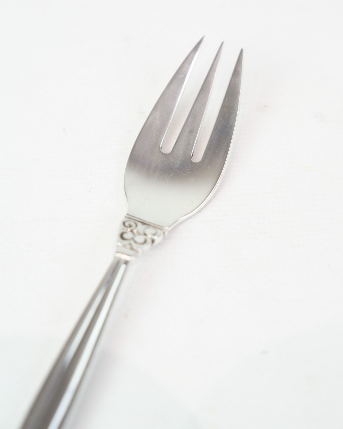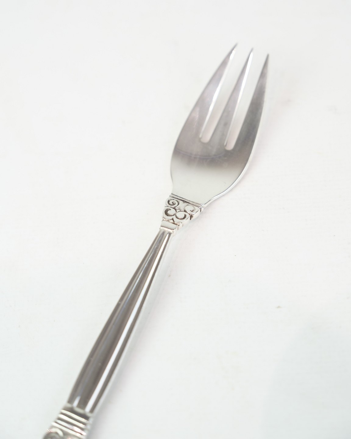 Beskrivelse: Georg Jensen Barnegaffel i sølv, mønster Konge. Designet af Johan Rohde i 1915. Længde 16.5cm. Klassisk dansk sølvarbejde.
