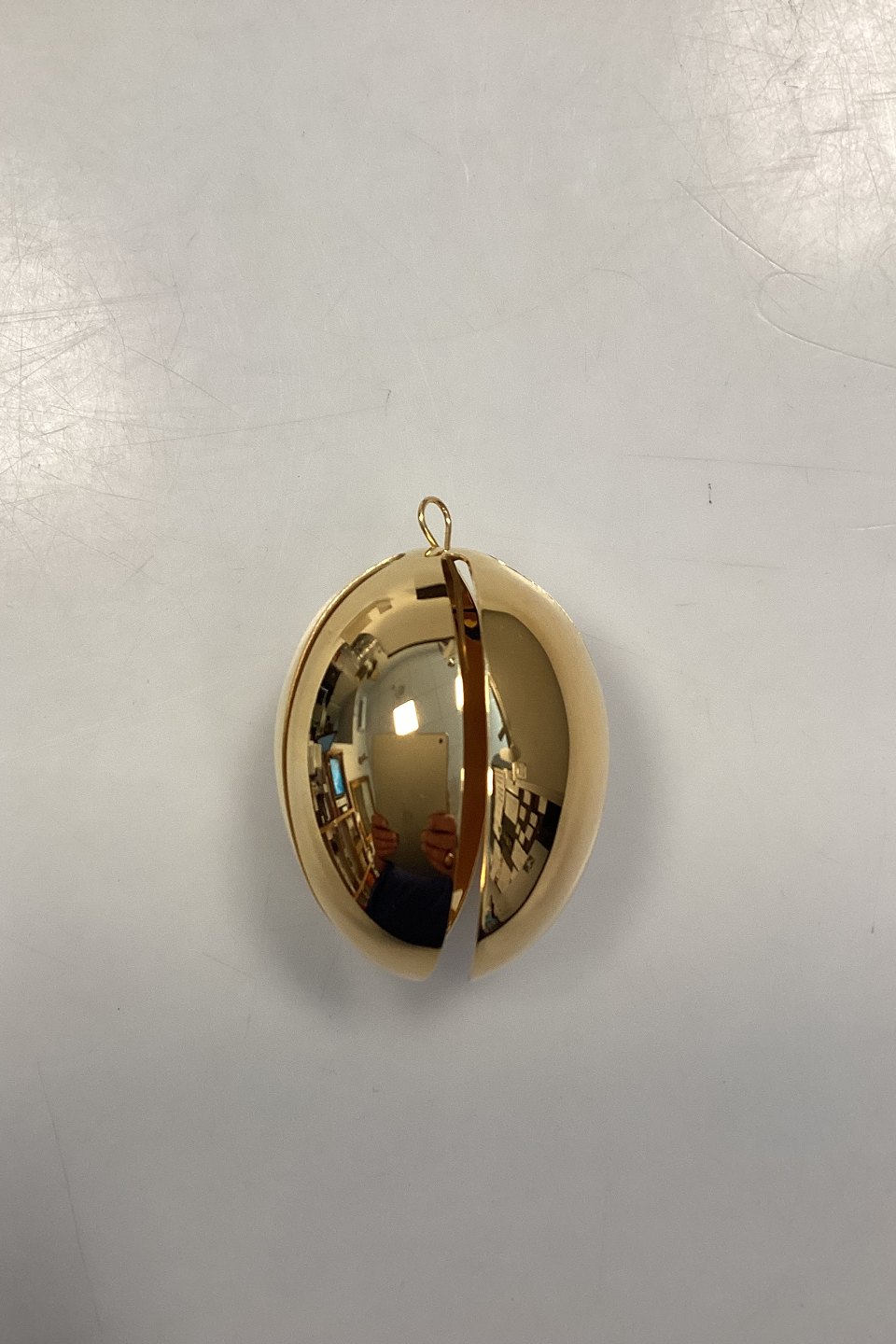 Description: Georg Jensen Easter Egg 2004. Design: Regitze Overgaard. Brass plated with 24-carat gold. (The first egg)