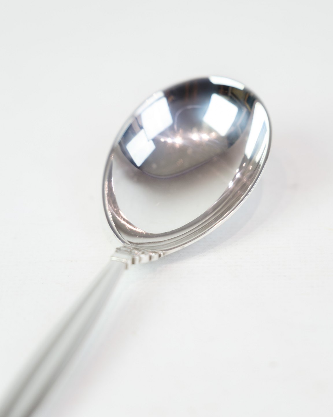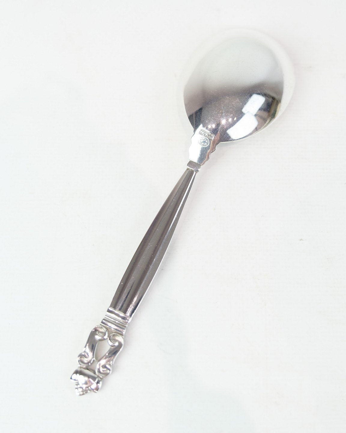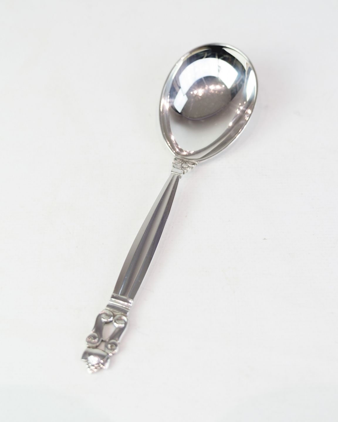 Beskrivelse: Georg Jensen Marmeladeske i sølv, mønster Konge. Designet af Johan Rohde i 1915. Længde 16cm. Klassisk dansk sølvarbejde.