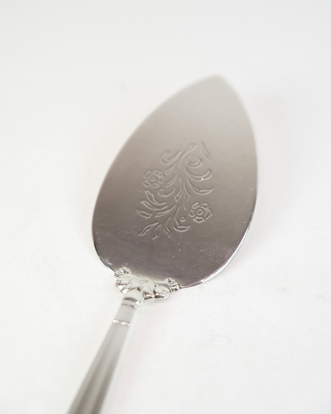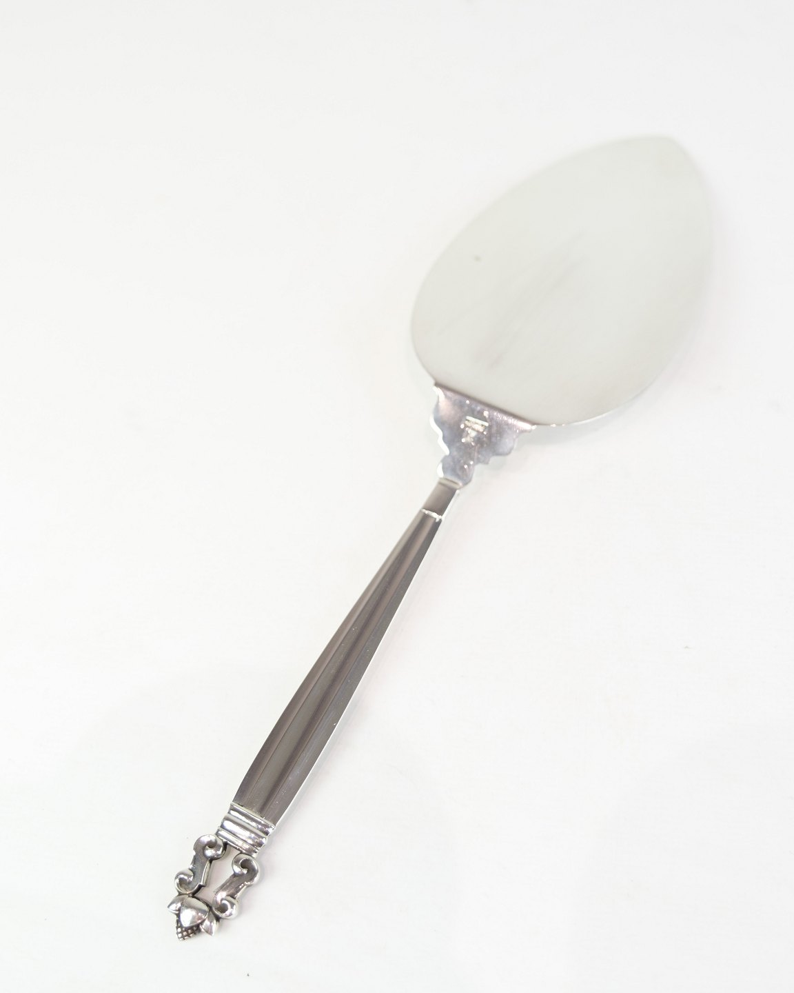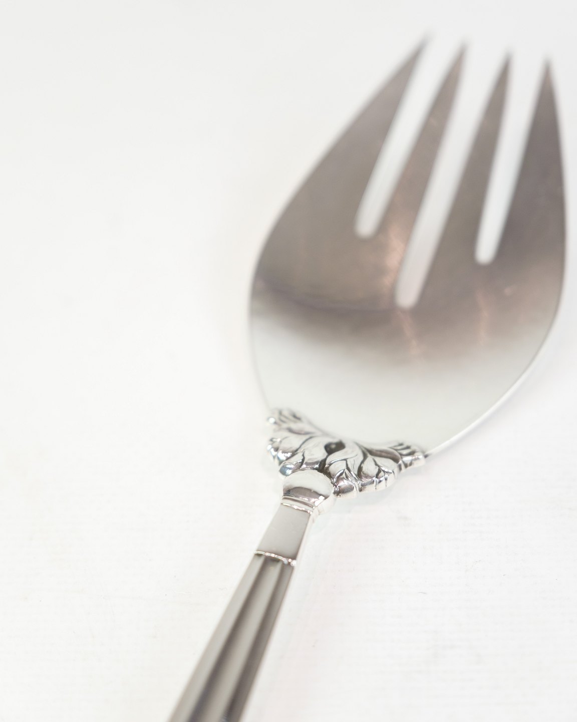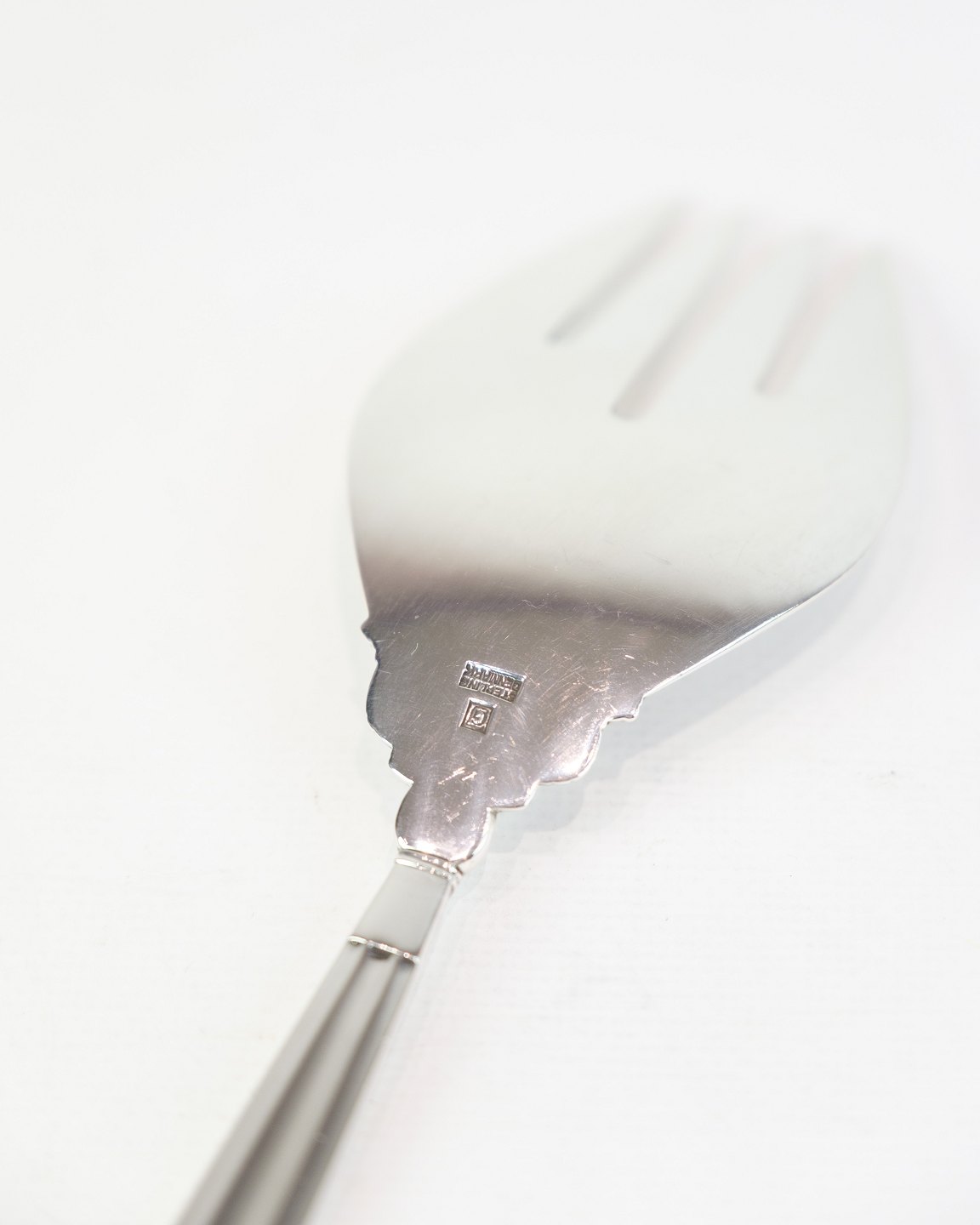 Description: Georg Jensen serving set in King pattern. Sterling silver spade (No. 193, 26.5 cm) and fork (No. 114, 24 cm). Design by Johan Rohde 1915.