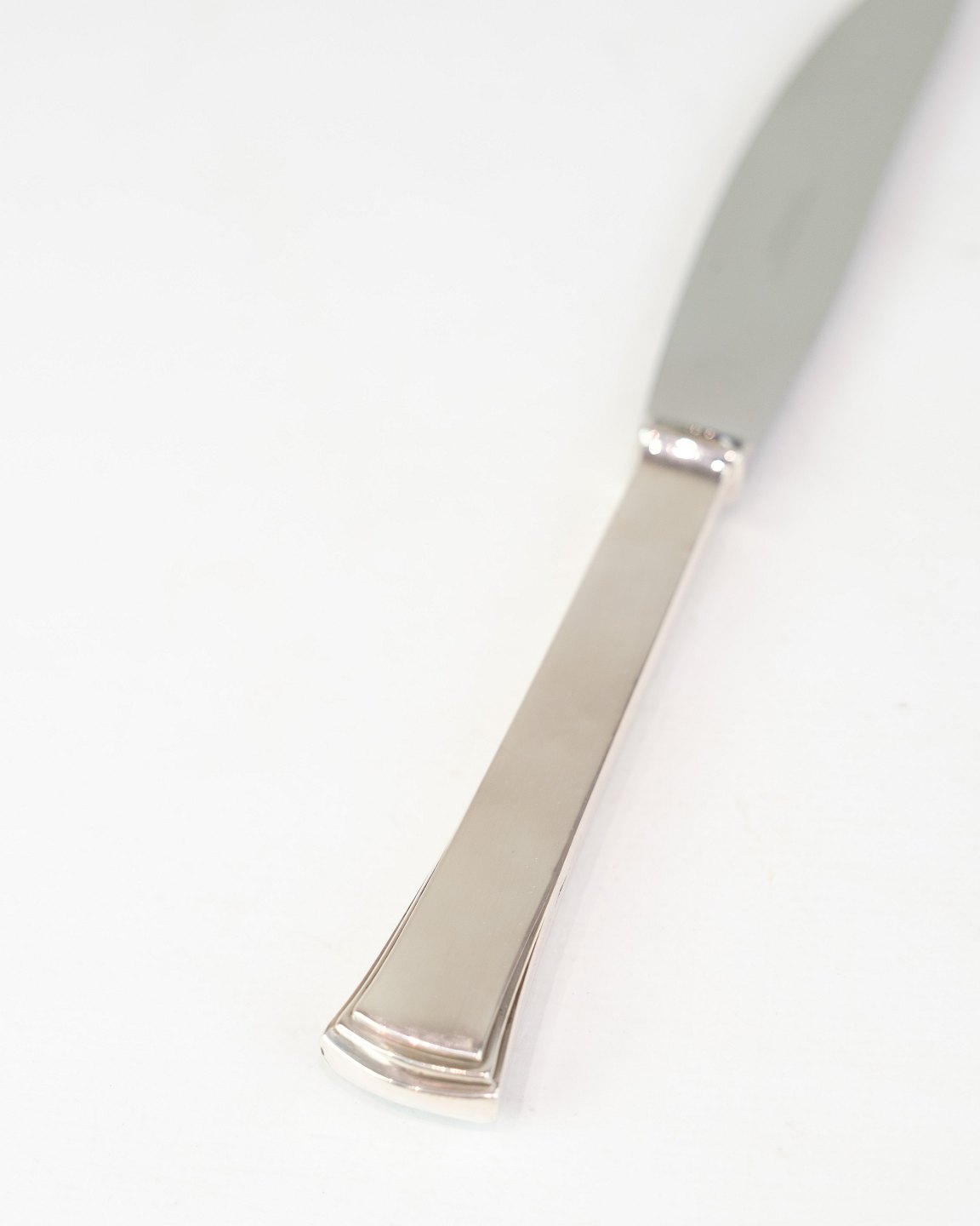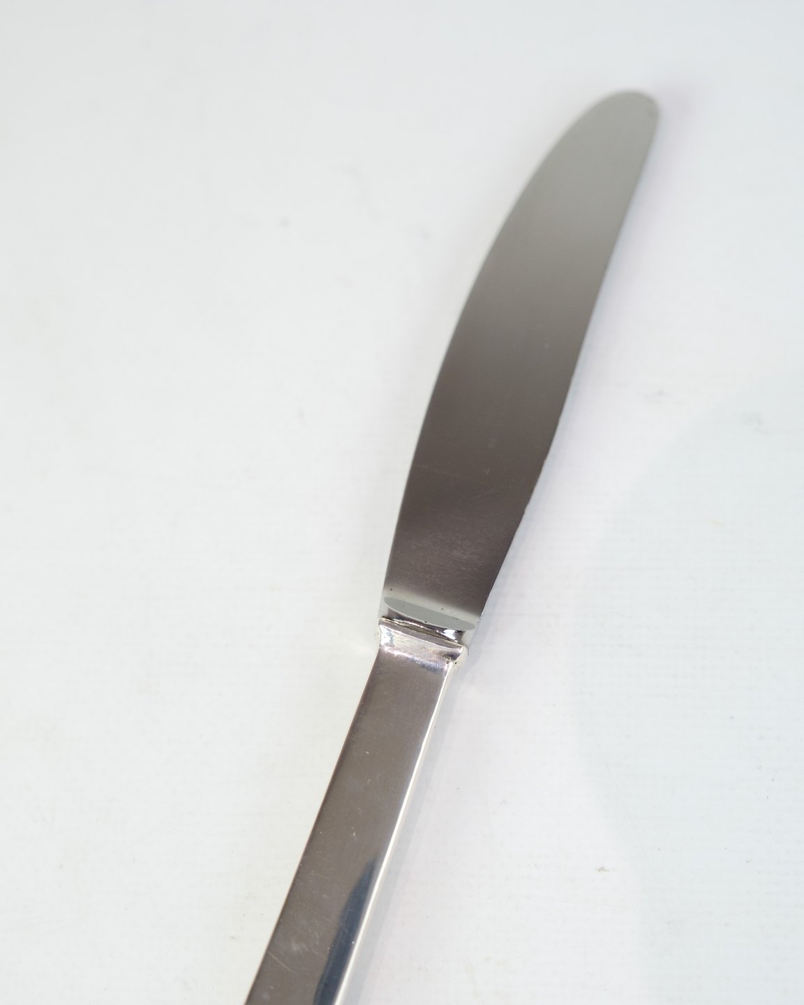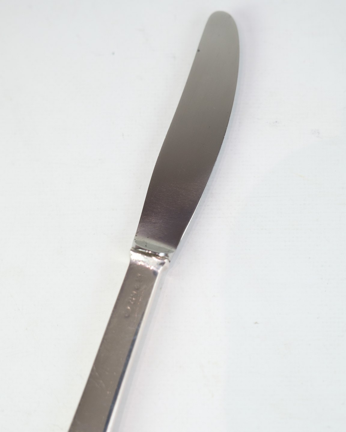 Description: Evald Nielsen dinner knife in real silver. Congo pattern No. 32 with short handle. Length 23 cm. Classic Danish silverwork.