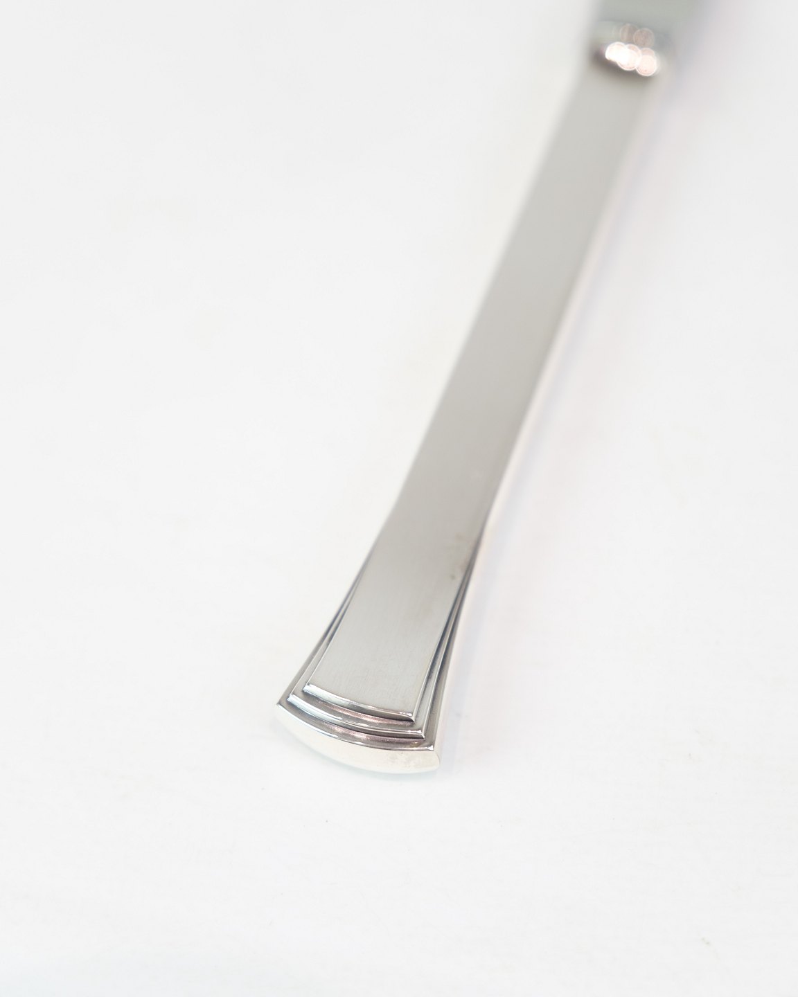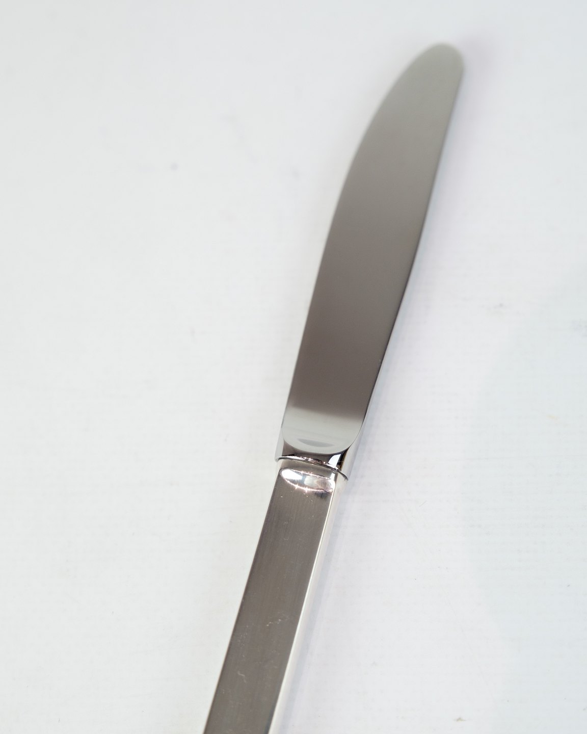 Description: Evald Nielsen lunch knife in real silver. Congo pattern No. 32 with long handle. Length 20 cm. Classic Danish silverwork.