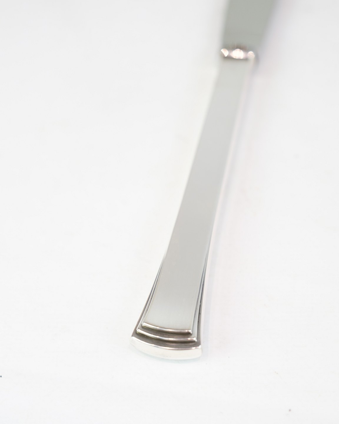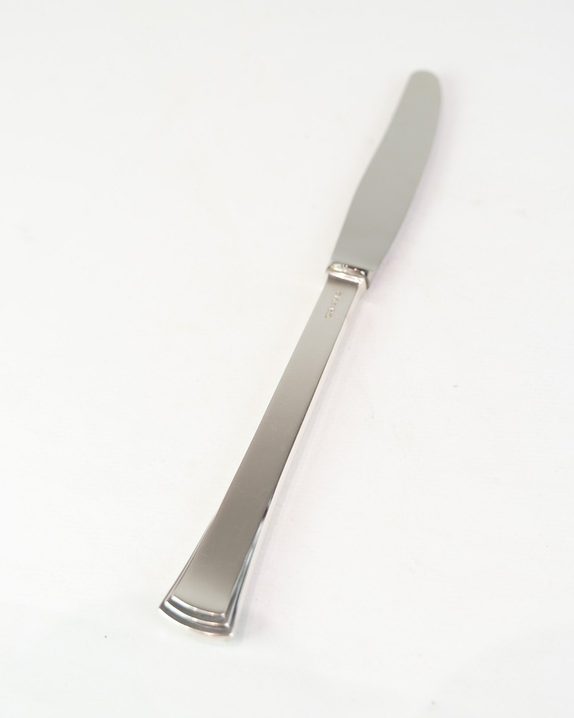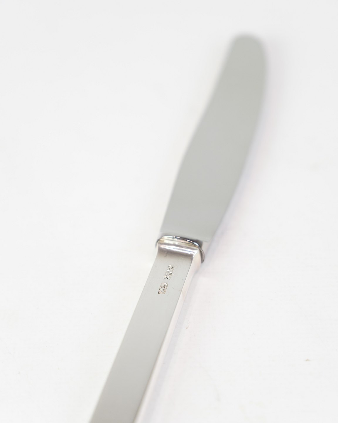 Description: Evald Nielsen dinner knife in real silver. Congo pattern No. 32 with long handle. Length 23 cm. Classic Danish silverwork.