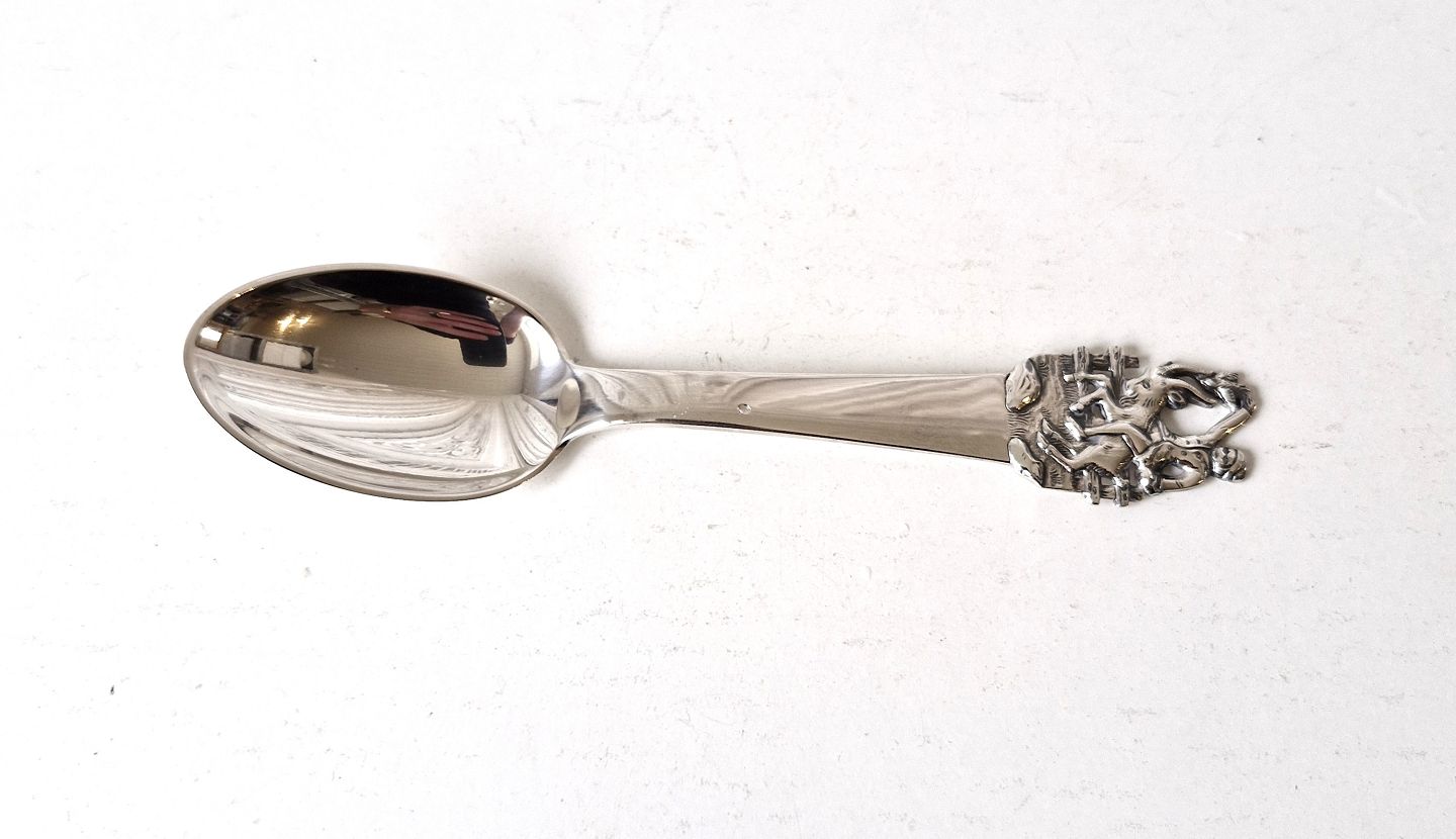 Beskrivelse: H.C.Andersen barneske i sølv - "Klods Hans"